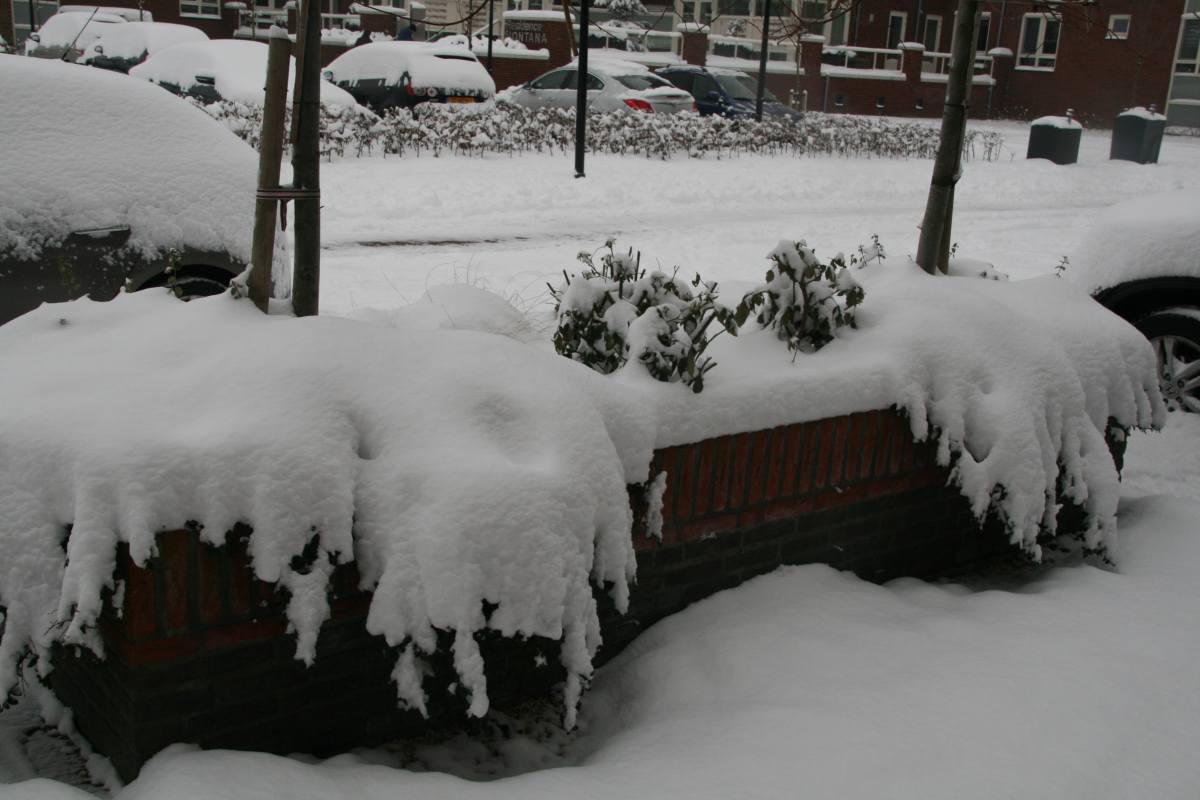 3 december: Leuk al die sneeuw in Nederland....maar voorlopig ligt de bouw van het nieuwe gezondheidscentrum stil omdat er met sneeuw en vrieskou niet meer gemetseld kan worden. En het pand zou nog wel wind en water dicht zijn voor de kerstvakantie. Dat gaat dus niet meer lukken. De geplande hoogste punt viering van 3 december is dus ook maar geschrapt, want daar zijn de bouwers nog lang niet.