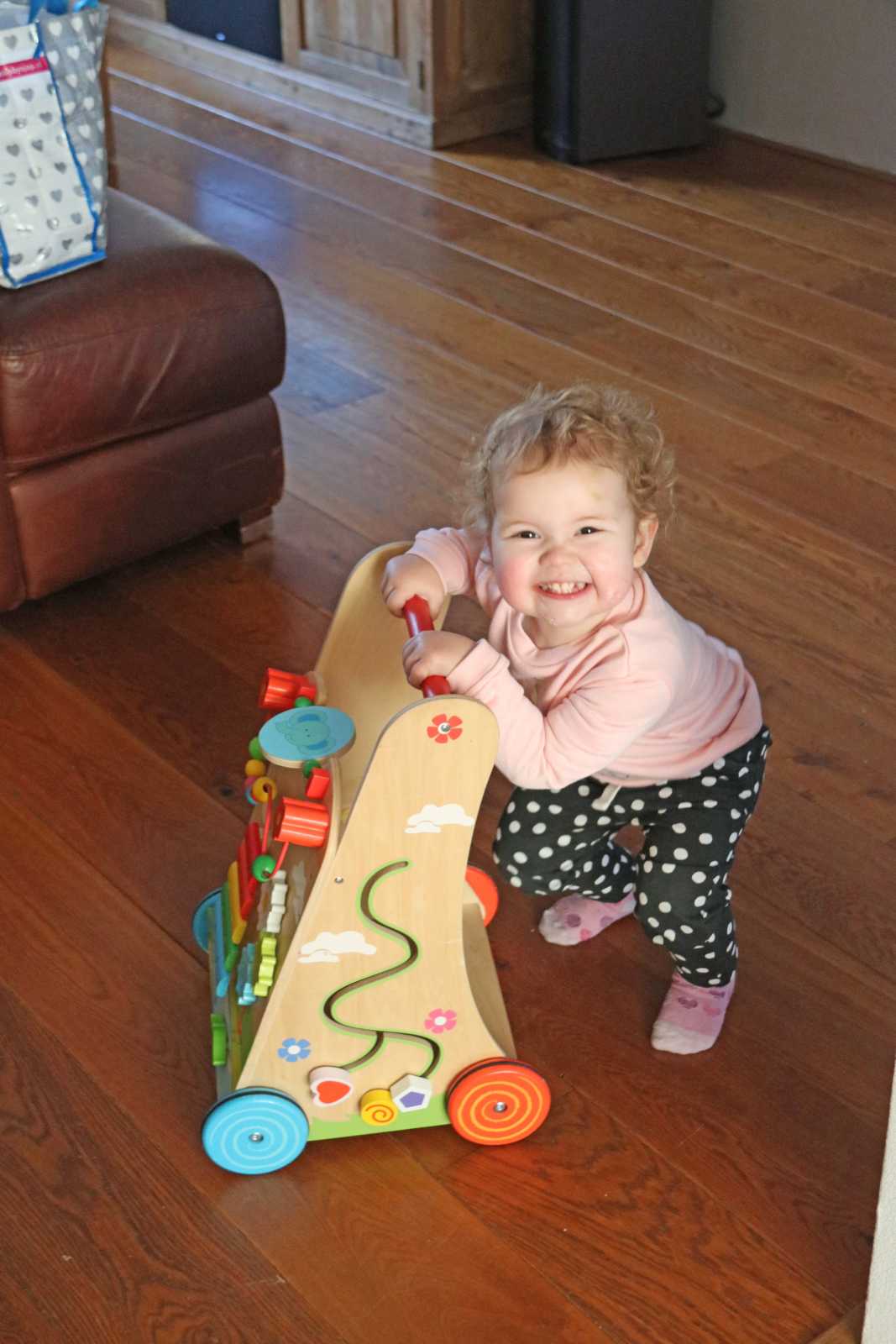 19 februari: We moesten thuis nog even poseren met de loopwagen van Yfke die weg zou gaan.........