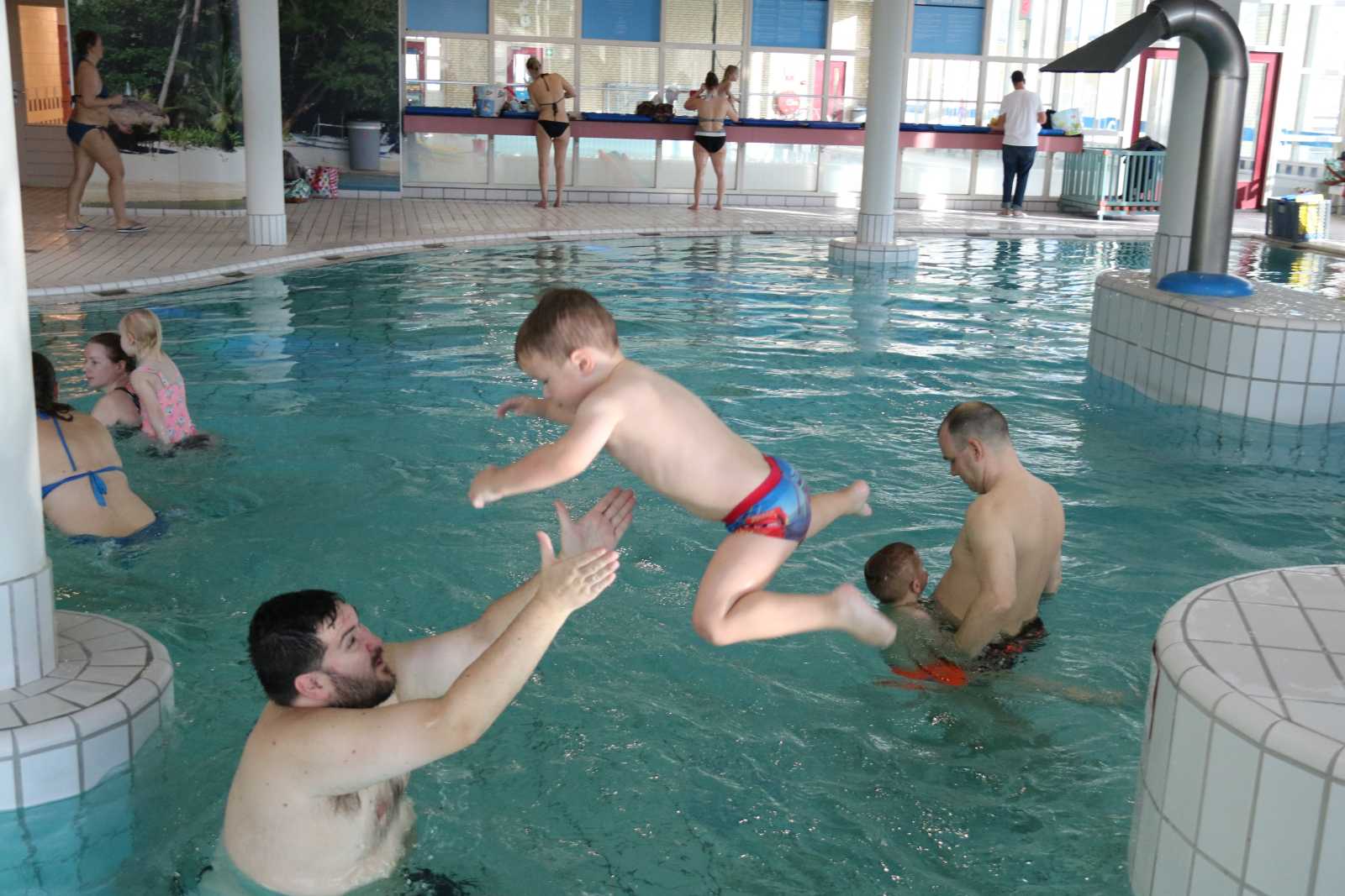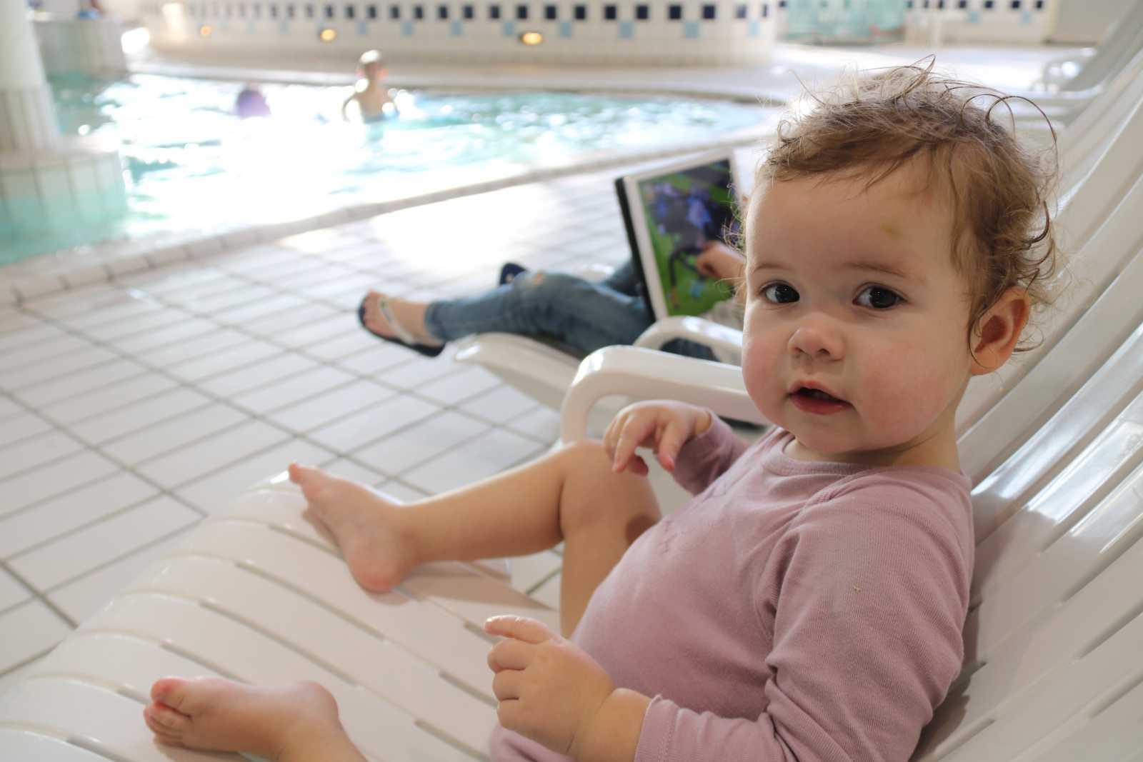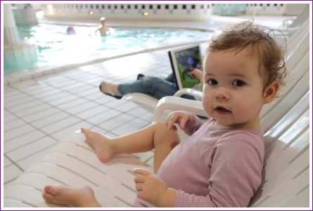 23 februari: Vandaag was er weer de zwemles, en weer mocht papa juist mee het water in..........