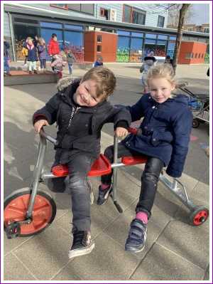 27 februari: Ik kon weer lekker met Fien spelen en we mochten ook weer samen in bad......