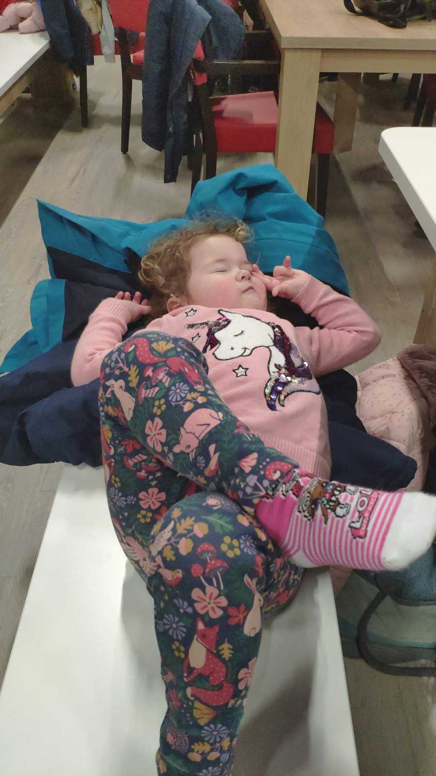 13 februari: Toen ik nog op school was en Yfke thuis aan het spelen was is ze op de bank in slaap gevallen met haar Elsa jurk aan. Maar toen ze weer wakker was is ze mij 's-middags op school op komen halen, ze heeft toen nog even op het schoolplein gespeeld. Vervolgens zijn we naar mijn zwemles gegaan, en aansluitend naar opa en oma. Die waren vandaag precies 50 jaar getrouwd. Al met al een vermoeiende dag, dus in de auto terug naar huis alvast tijd voor een tukje........