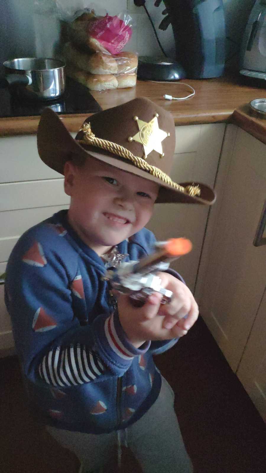 Eenmaal thuis heeft Youp ook nog even cowboy gespeeld.