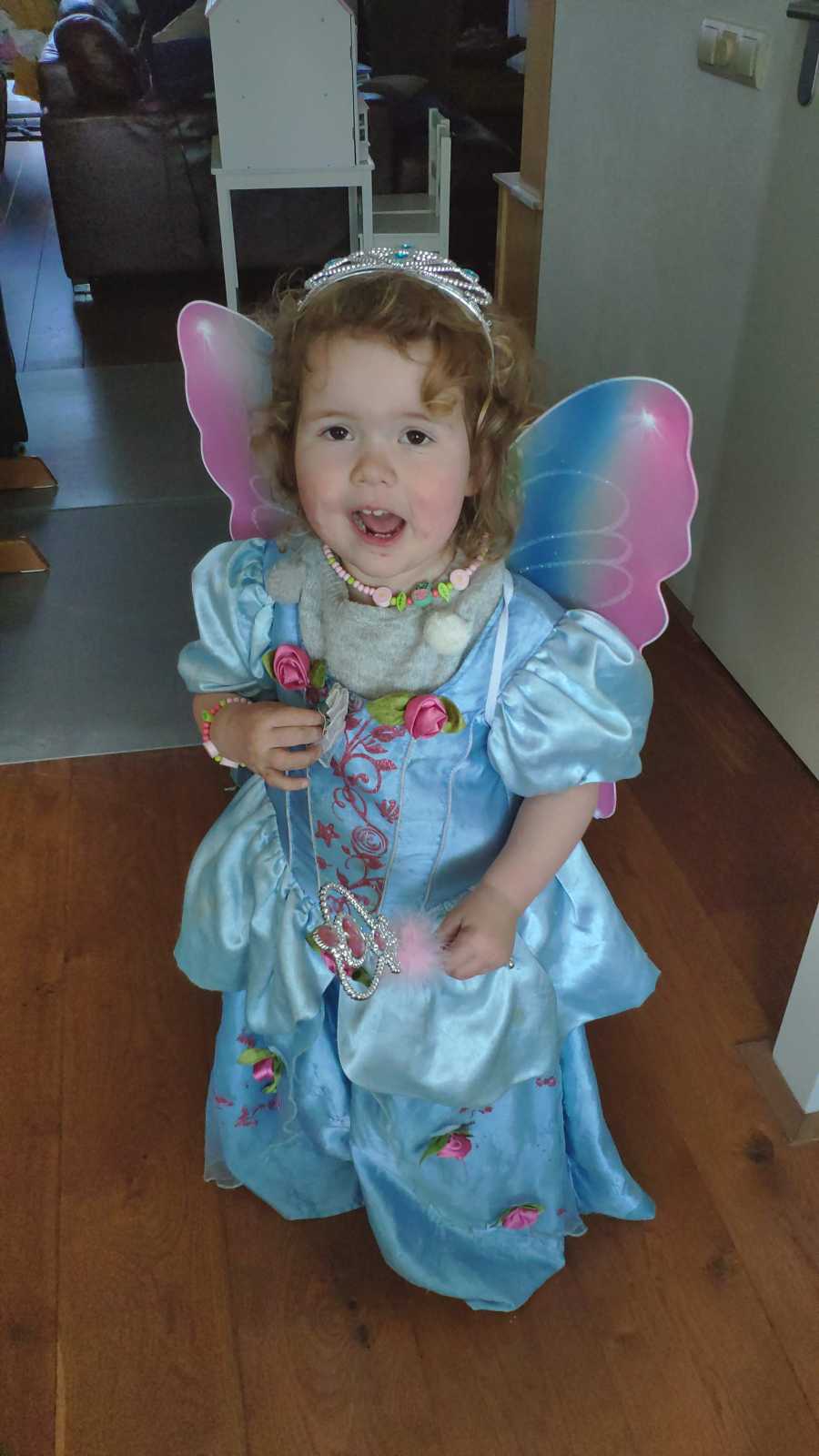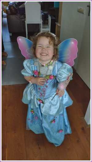 7 april: Yfke is een prinses en een elfje in een, een mooie jurk maar ook vleugels.......