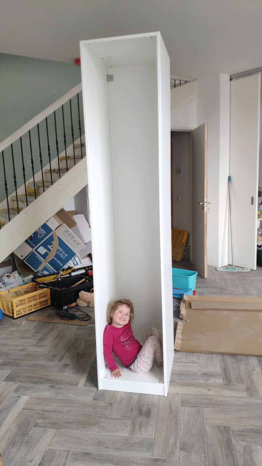 29 april: Yfke wilde even in een kast gaan zitten die papa aan het bouwen was. In de middag mochten we spelen bij Fien.........