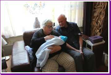 5 juli: Vanmiddag zijn Frans & Frieda helemaal uit Kerkrade komen rijden om op kraambezoek te komen.
