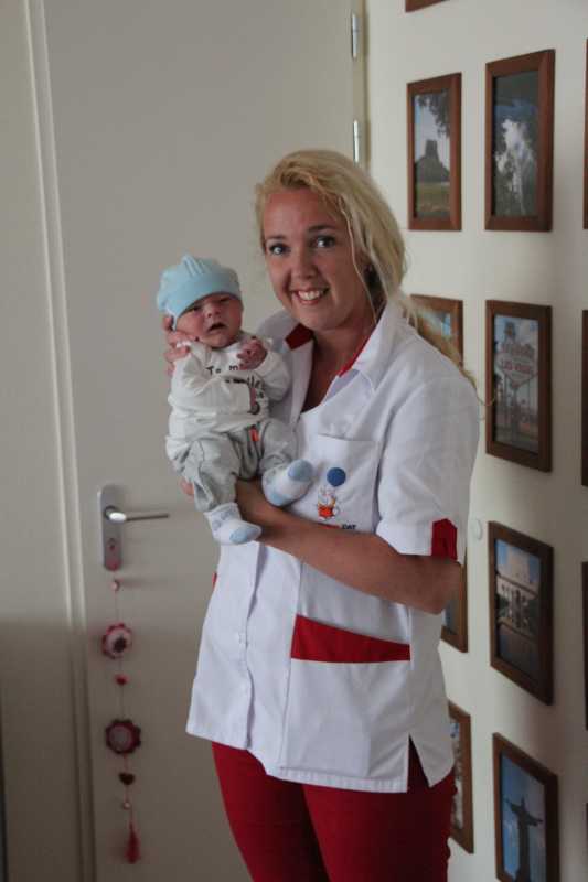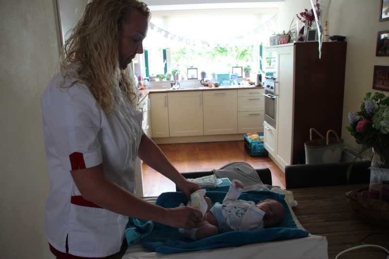 Aan het begin van de middag kwam Carla Bastemeijer op kraambezoek. Zij heeft een praktijk voor fysiotherapie en zit op dezelfde verdieping als Jantine in het gezondheidscentrum in Rhoon.