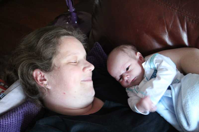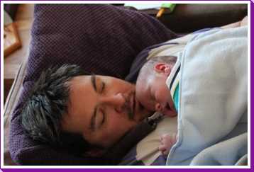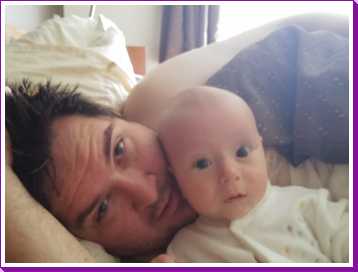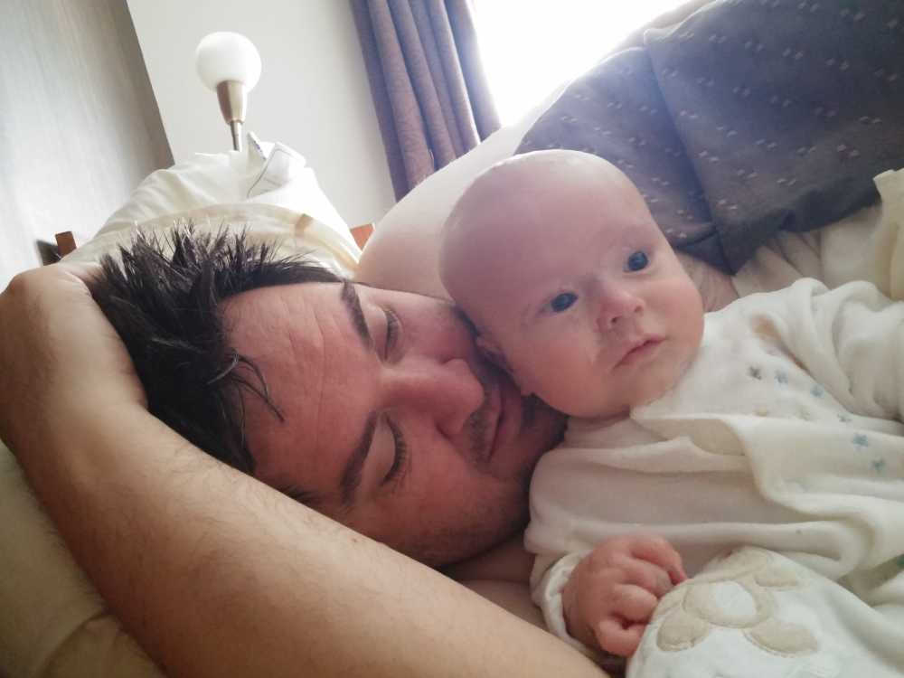 12 juli: Een lekker dagje op bed en slapen in papa's armen......