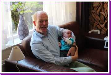 8 augustus: We zijn vanmiddag even bij opa en oma op bezoek geweest omdat ook tante Marlou, oom Ruud en mijn neefje Jort en nichtje Puck daar waren om opa te bezoeken na zijn ongeluk. Zo mocht ik even bij allen op schoot voor de foto.