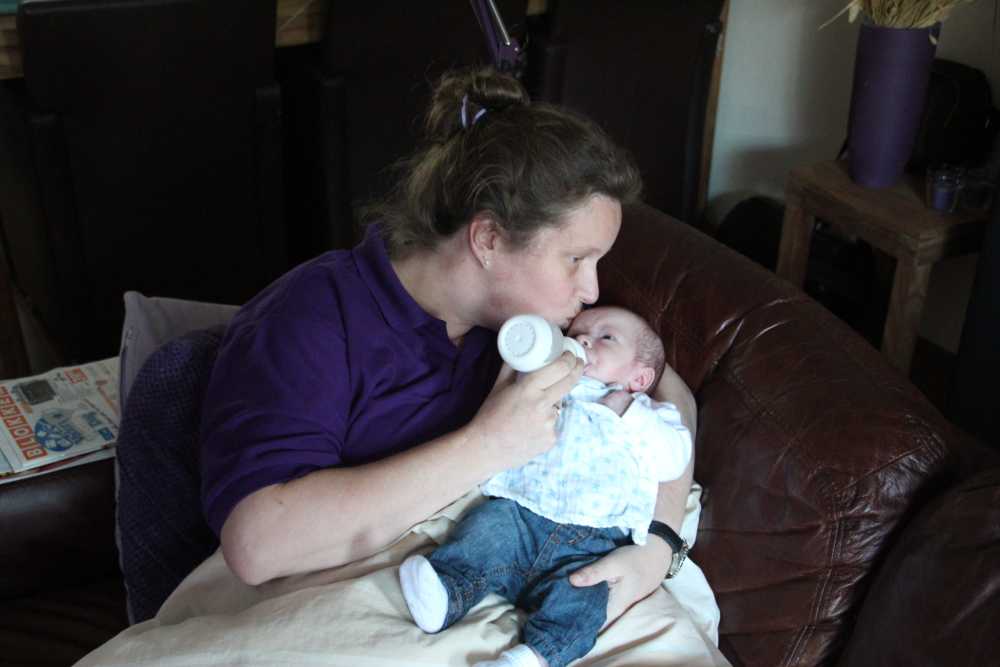 4 juni: Vandaag kwamen Frans Boute en Florence Geers van de beleidscommissie van de huisartsenpost R'dam Zuid op kraamvisite. Kort daarna ging er weer een fles melk in en werd er weer tegen de slaap gevochten.....