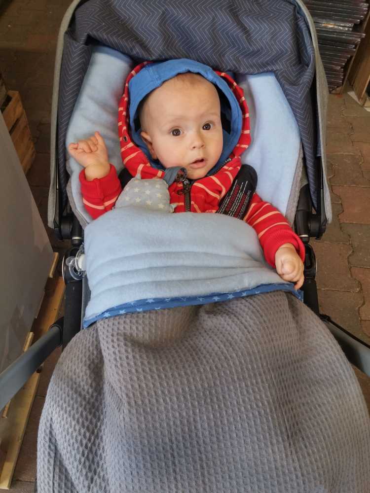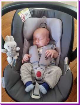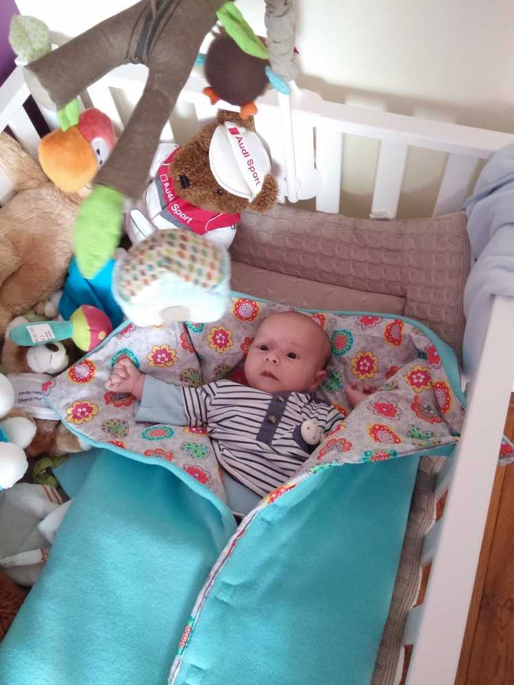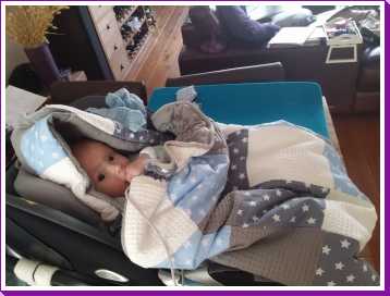 Toen ik 's-avonds eenmaal op bed lag heeft mama mijn nieuwe slaapzak voor in de autostoel afgemaakt zodat ik ook komende winter heerlijk warm vervoerd kan worden.
