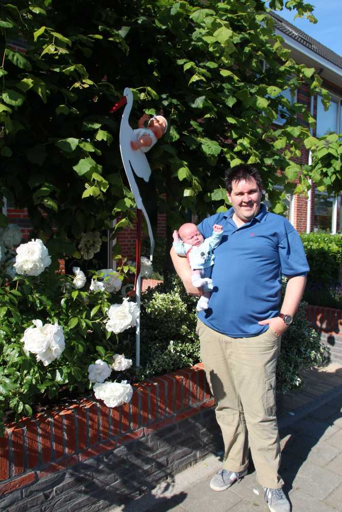 15 mei: Het grote nieuws is eindelijk daar: vandaag is onze zoon Youp geboren. Al rond de middag voelde Jantine de weeën opkomen en kreeg Erik dus een telefoontje. Niet veel later kwam ook de verloskundige thuis polshoogte nemen. In eerste instantie bleek het nog wat vroeg om er wat van te zeggen en dus zouden ze een uurtje later terugkomen. Al binnen dit uurtje werden de weeën heviger en zat er geen tijd meer tussen. Er was dus geen pauze meer tussen de weeën hetgeen erg vermoeiend is. De verloskundige kwam dus weer terug en besloot om toch maar richting Ikazia te gaan. Dit was nog best lastig omdat Jantine continu weeën beleefde met pieken om de drie minuten. Eenmaal in Ikazia bleek al snel dat Jantine een zogenaamde weeënstorm had, er was geen rustpunt tussen de weeën en dus moest er een ruggeprik worden gezet om de pijn te verzachten omdat het anders niet vol te houden zou zijn. De ruggeprik bleek nog niet zo eenvoudig te zetten tussen de wervels omdat voorover bukken met een bolle buik nu eenmaal moeilijk gaat. Uiteindelijk is dat wel gelukt gelukkig.