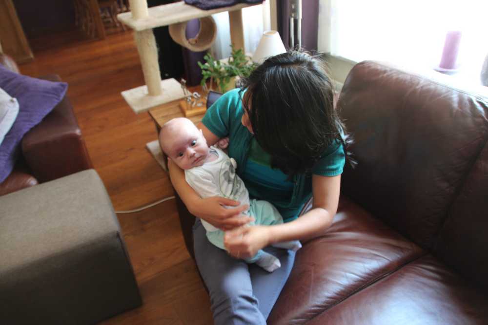 18 augustus: De dag begon lekker rustig in de box. Om 11.00 kwam Lia Chan op kraamvisite. 's-middags had mama weer afgesproken met dames van de pufclub om te gaan borrelen bij Doubl Dutch in Barendrecht.