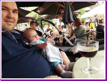 2 augustus: Vanmiddag zijn we even naar 's-Hertogenbosch geweest om daar lekker een terrasje te pakken en nieuwe grotere drinkflessen voor mij te kopen. Daarna zijn we op kraamvisite geweest bij Sven & Marjolein in Uden. Ook hun pasgeboren zoon heet Jens. We zijn daarna ook lekker blijven BBQ-en.