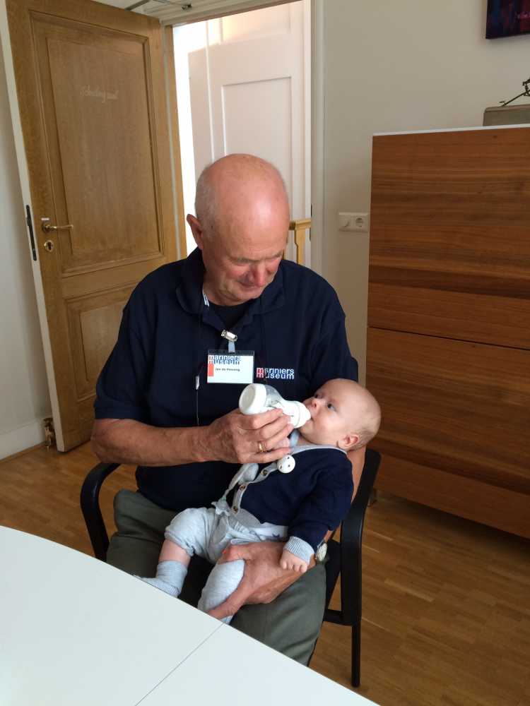 28 juli: Vandaag ben ik met mama naar het werk van opa geweest in het Mariniersmuseum. Ik heb even met opa rondgekeken en moest ook even op de foto met opa.
