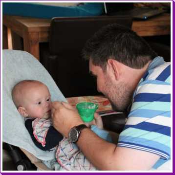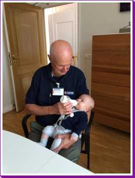 30 oktober: Ik zit even lekker bij opa op schoot mijn fles te drinken.....