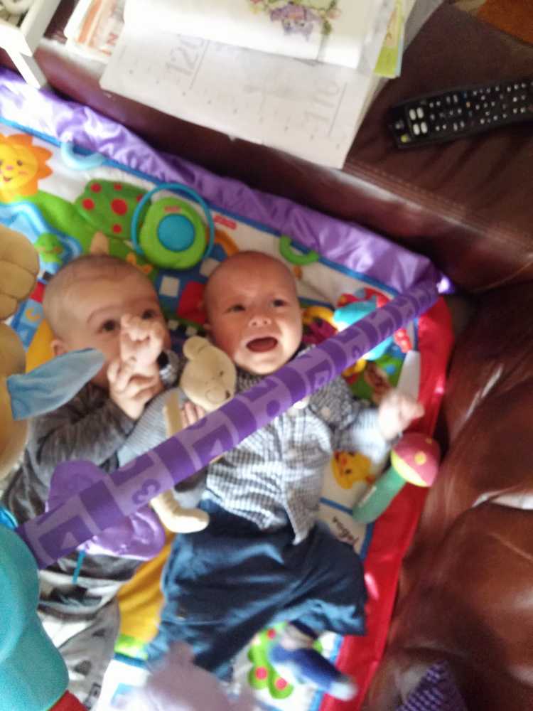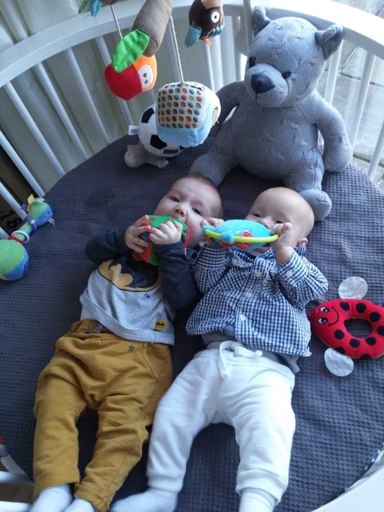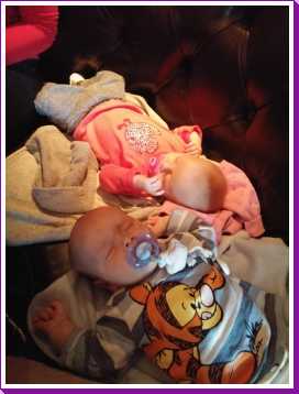 11 september: Vandaag met ik met mama bij Judith en Liam geweest lunchen. Ik mocht weer samen met Liam in de box liggen. Die zit er echter heel anders uit dan thuis, deze is rond en die van mij heeft rechte kanten.....