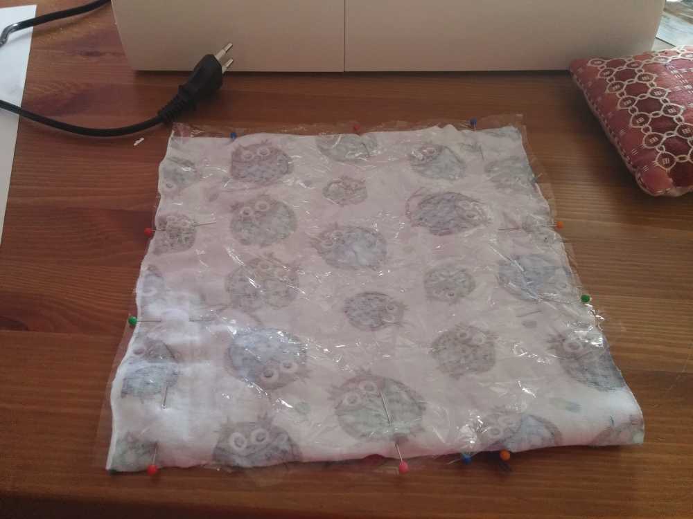 3 september: Mama heeft de smaak te pakken met het naaien van uiltjes. Er werd dus weer een nieuw uiltje in elkaar geknutseld, ditmaal om op de plaid te naaien voor over de box. Zo kunnen papa en mama zien wat boven en onder is omdat Poekie & Gizmo 's-nachts ook in mijn box gaan slapen en ik niet in de haren wil liggen. Morgen zou hij af zijn.