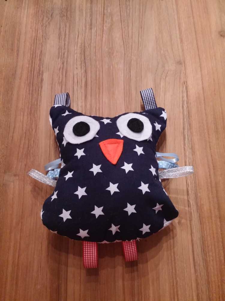 31 augustus: Mama heeft vandaag weer een nieuwe uil gemaakt voor mij voor in de box. Compleet zelfs met een belletje er in. Hij is mooi geworden hé..........