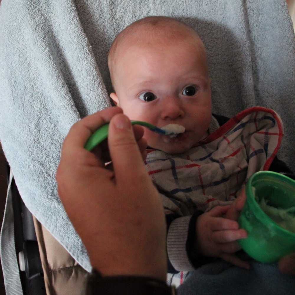 Aan het einde van ochtend heb ik vandaag voor het eerst worteltjes uit een potje gegeten. Normaal krijg ik verse worteltjes die papa en mama zelf gestoomd en gepureerd hebben, maar aangezien we binnenkort op vakantie gaan moet ik deze ook leren eten omdat de verse niet mee kunnen.