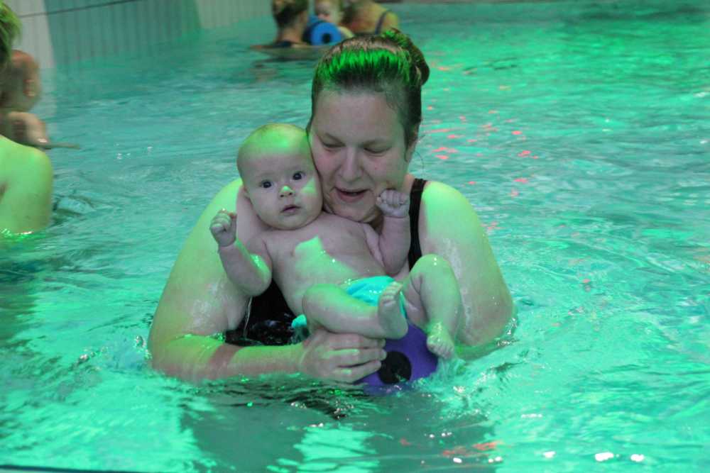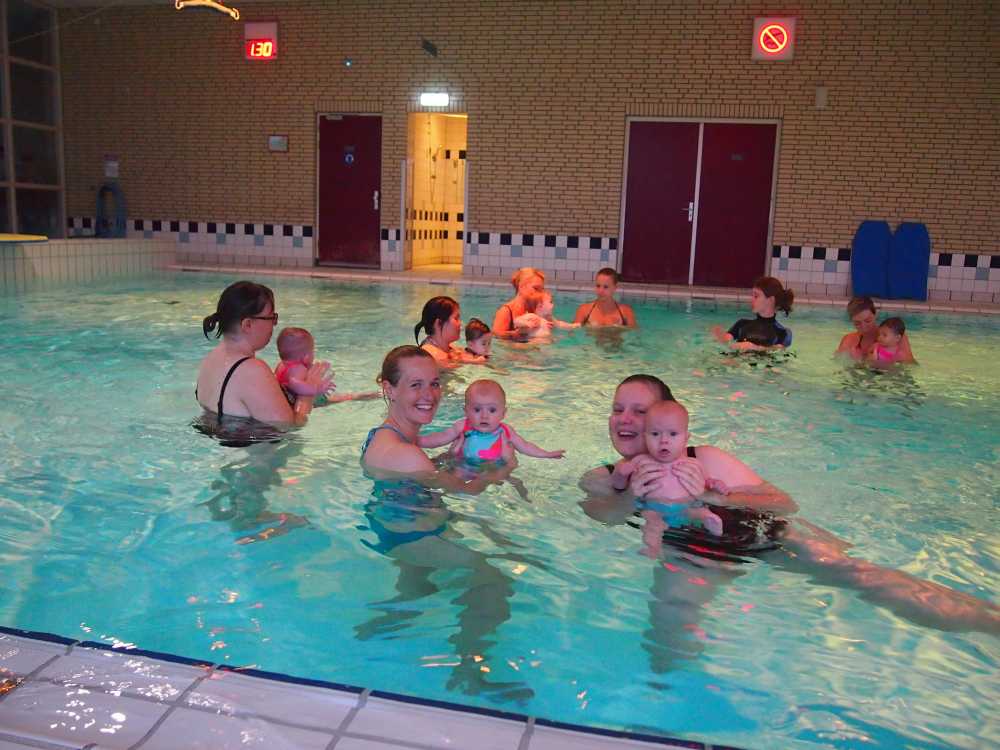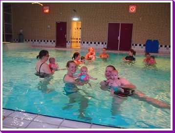 6 oktober: Vandaag was er weer de wekelijkse zwemles met mama. Ditmaal was ook de camera een keer mee en werden er dus een flink aantal foto's van ons zwemclubje gemaakt. Zo kunnen jullie zien dat ik het op zich wel best vind maar ik sta nog niet te springen......