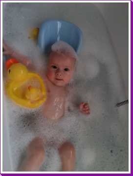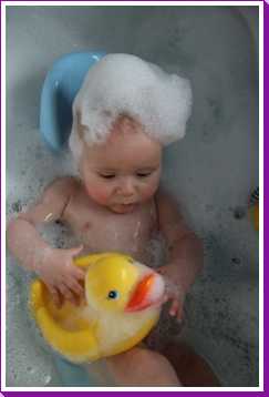 31 oktober: Vandaag ben ik in plaats van te douchen met mama weer eens lekker in bad geweest. Flink wat schuim daar houd ik wel van, en die eendjes vind ik ook wel leuk.