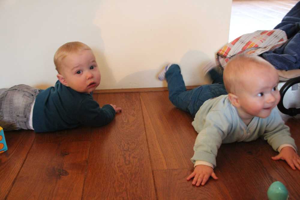 7 juni: Vanmiddag kwamen Sven & Marjolein langs op kraamvisite. Zelf zijn ze eind april ook weer opnieuw ouders geworden van zoon Jens. Die moesten natuurlijk ook even naast elkaar in de box gelegd worden. Jens is dan wel drie weken ouder, maar Youp was bij de geboorte al langer en zwaarder dan hij. Dat is ook goed te zien.