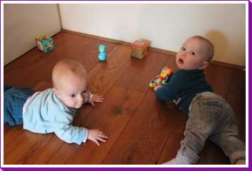11 december: Vandaag is Bieneke langs geweest met mijn vriendje Lars. Samen met hem heb ik op de grond met mijn blokjes liggen spelen. Maar Lars zat er ook aan, en dat wil ik eigenlijk helemaal niet. Als er iemand op die blokjes kwijlt ben ik het........