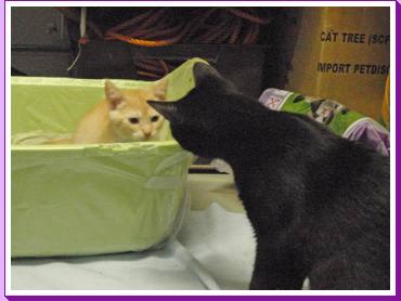 28 juli: Gezinsuitbreiding: GIZMO! Omdat wij overdag natuurlijk meestal aan het werk zijn hebben we een tweede kat erbij genomen als speelkamaraatje voor Poekie. Voorlopig is het aftasten en kijken wat ze elkaar kunnen maken. Onderstaand wat foto's van de eerste kennismaking.