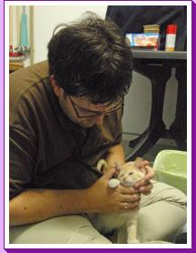 1 december: arme Gizmo, vandaag wordt hij precies 7 maanden en dus tijd om langs de dierenarts te gaan, om er een “je-weet-wel-kater” van te maken. Wel een beetje zielig gezicht om hem net uit de narcose zo half suf schuifelend op zijn voorpoten door de kamer te zien tijgeren...