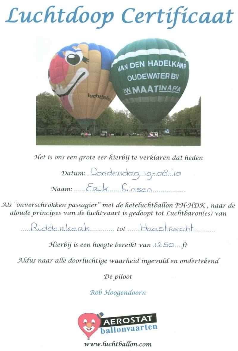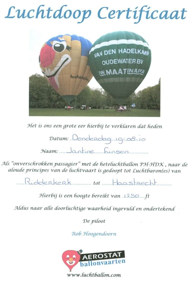 19 augustus: We hebben een luchtballonvaart gemaakt vanuit Ridderkerk. De wind dreef ons naar Haastrecht. Uiteraard kregen wij ook onze luchtdoop.