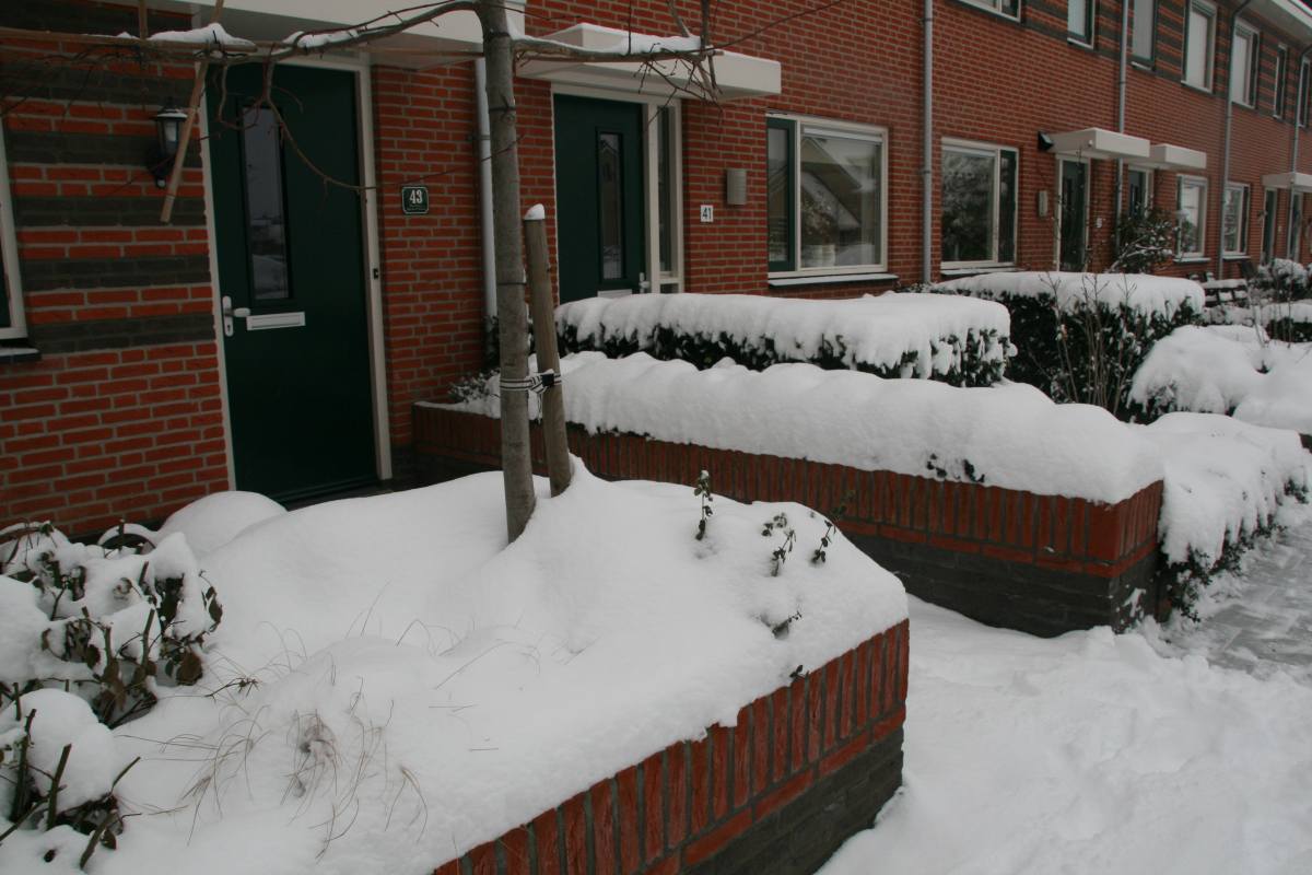 3 december: Leuk al die sneeuw in Nederland....maar voorlopig ligt de bouw van het nieuwe gezondheidscentrum stil omdat er met sneeuw en vrieskou niet meer gemetseld kan worden. En het pand zou nog wel wind en water dicht zijn voor de kerstvakantie. Dat gaat dus niet meer lukken. De geplande hoogste punt viering van 3 december is dus ook maar geschrapt, want daar zijn de bouwers nog lang niet.
