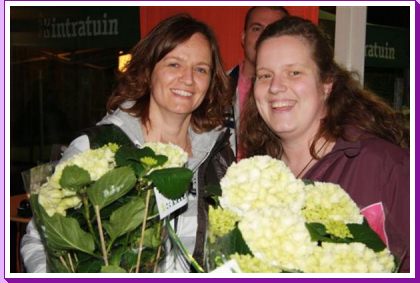 Deze week speelden Lisette en Jantine samen een tennis toernooi in Poortugaal. En op zondag kwamen ze zowaar in de finale! Alleen jammer dat we die zondag om 9.00 uur de halve finale moesten spelen en meteen aansluitend de finale. De eerste set in de finale werd nog gewonnen, maar daarna was de koek echt op helaas. Die avond was er wel een prijsuitreiking voor alle 1e en 2e plaatsen: we kregen een leuke tegoedbon, een hortensia en een foto voor eeuwige roem.