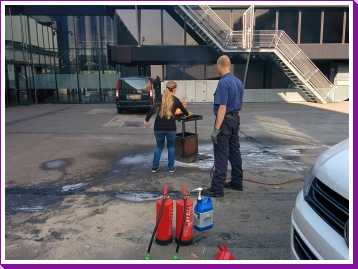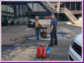 18 september: Erik had vandaag zijn jaarlijkse herhalingscursus BHV bij Ahoy Rotterdam. Uieraard werden diverse zaken weer geoefend zoals reanimeren, verbandjes aanleggen, stabiele zijligging, enz. Ook moest er buiten weer een 'brandje' geblust worden. Dit waren dit keer een vloeistofbrand en een brand in de pan. De vloeistofbrand werd met een CO2 blusser bestreden en de vlam in de pan door er simpelweg het deksel overheen te schuiven. De cursus is weer goed doorlopen dus het pasje is weer onderweg.