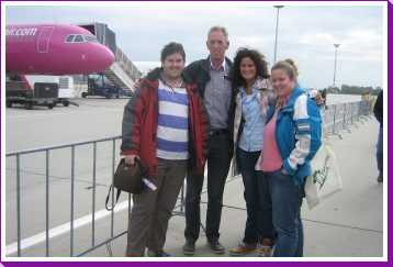 Emiel, Anja en Fenna hadden mazzel: zij mochten gratis bij de nooduitgang boven de vleugels zitten, zodat ze de benen konden strekken. Wij moesten helaas of €12.- pp bijbetalen voor dat voorrecht of opgekropt en opgevouwen achter hun plaats nemen. We hebben echt veel gevlogen, maar echt nog nooit zo krap gezeten. Nu snappen we waarom de vlucht maar €23.- was inclusief een ingecheckte koffer. Gelukkig duurde de vlucht maar 2 uurtjes en kregen we wat nutella van Emiel.