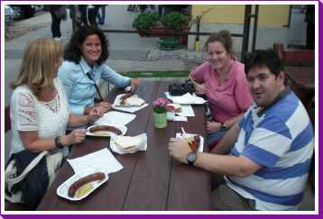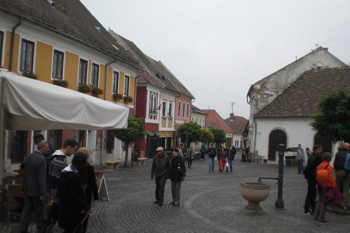 Verder noordelijker de stad uit, naar Szentendre. Een typisch Hongaars stadje aan de Donau. We parkeren hier en lopen een rondje lang oude gebouwen en lunchen op een pleintje. Fenna zag op de menu kaart iets staan met de woorden ‘gefrituurd’ en ‘gepaneerd’ en verheugde zich al helemaal op een soort schnitzel. Het bleken helaas gepaneerde en gefrituurde varkenshersenen te zijn!!!! Ieuw!!!! Gelukkig was de Hongaarse Goulash – bonen soep van de mannen en de tosti van Jantine best te verteren.
