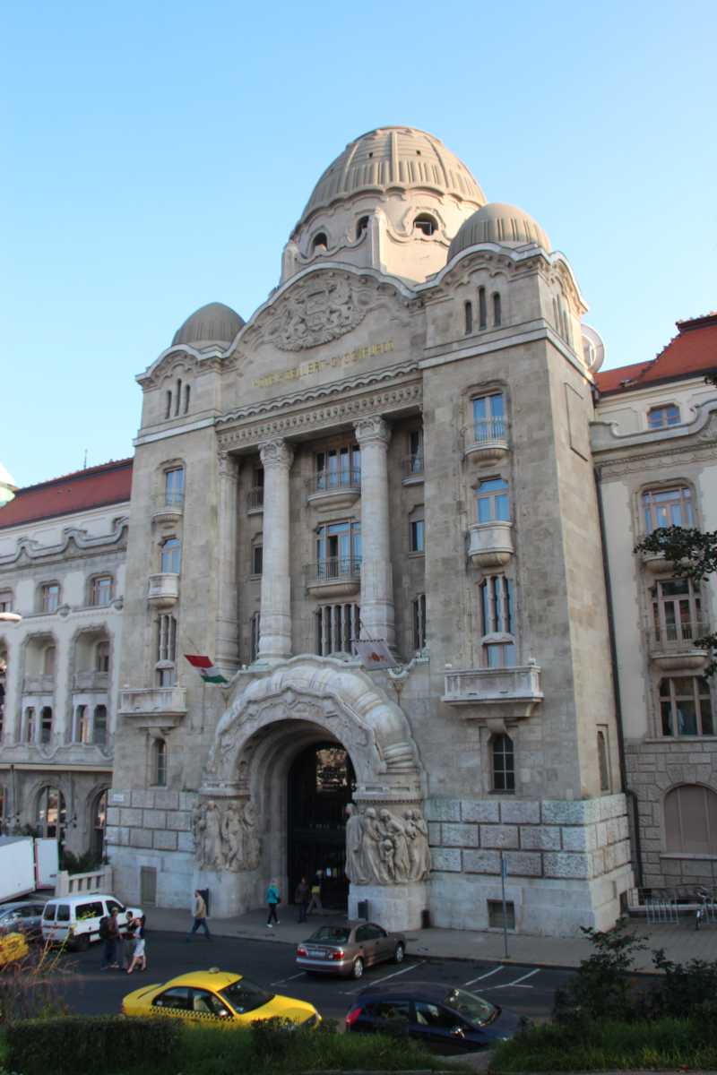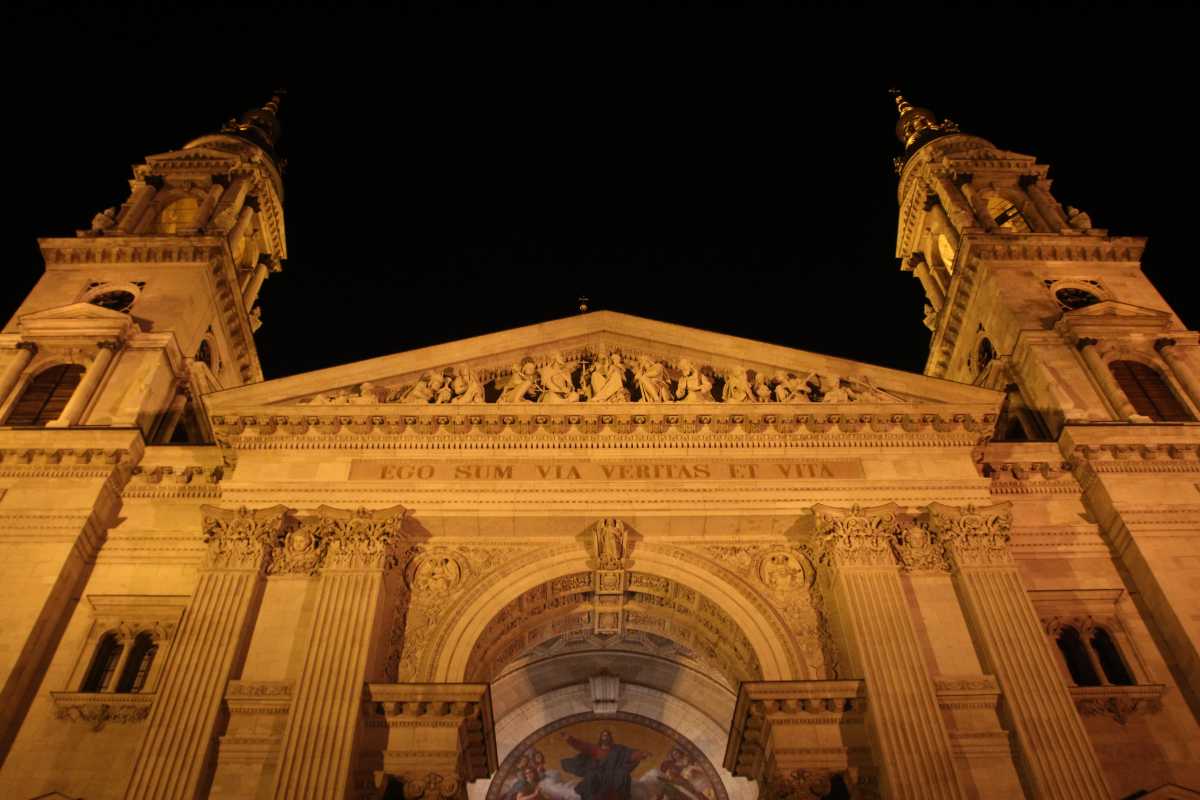 Na onze zwempartij willen we in de binnenstad gaan dineren. Per toeval belandden we op een prima parkeerplek in het centrum, schuin tegenover het Gresham paleis en waar we dit weekend nog wel vaker zouden parkeren. We nemen nog wat nachtelijke foto’s van de verlichtte St. Stephan basiliek en ploffen daarna neer bij een heerlijk Italiaans restaurant. Een beetje prijzig maar lekker gegeten. De toiletten zijn een belevenis op zich.