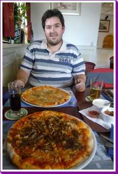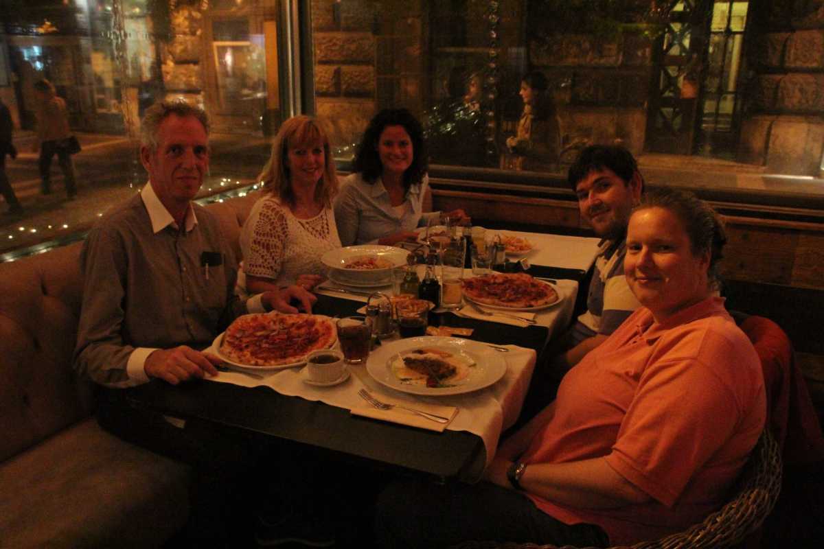 Daarna zijn we naar het vliegveld gereden. Hier waren we al op tijd om rustig de huurauto in te kunnen leveren en in te checken. De huurauto werd zonder enig krasje weer ingeleverd en ook het inchecken verliep vlot en zonder problemen. Een uurtje later zaten we alweer in het vliegtuig terug naar Eindhoven. Eenmaal daar aangekomen bleek het allemaal erg snel te gaan en in een oogwenk stonden we voor de terminal te wachten op de lift naar het huis van Emiel en Anja. Omdat het tegen het einde van de middag was besloten we nog met z’n vieren bij een lokaal Italiaans restaurant te gaan eten alvorens terug naar huis te rijden. Dit was een goede keuze, de pizza’s waren er erg lekker en alles stond ook erg snel op tafel.