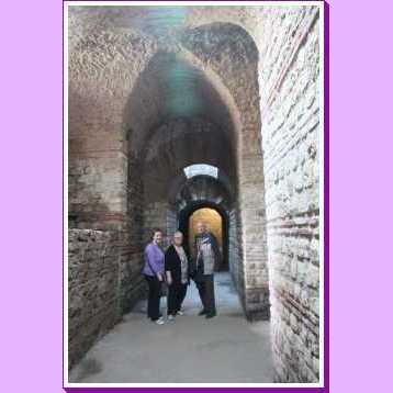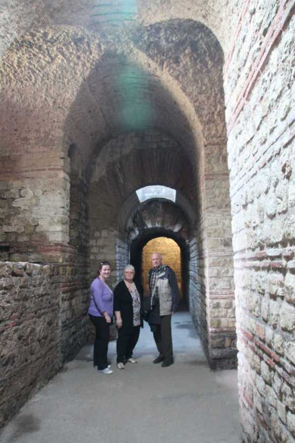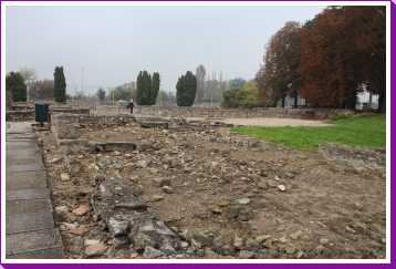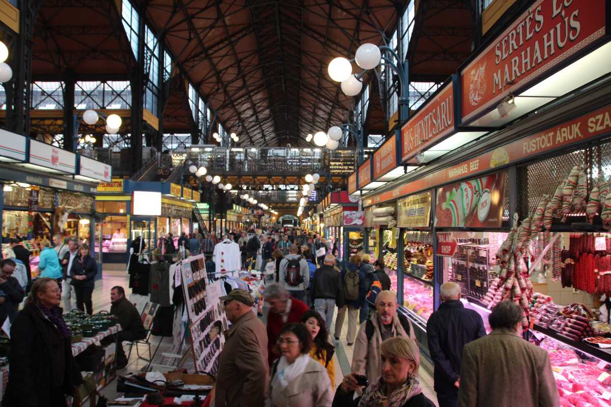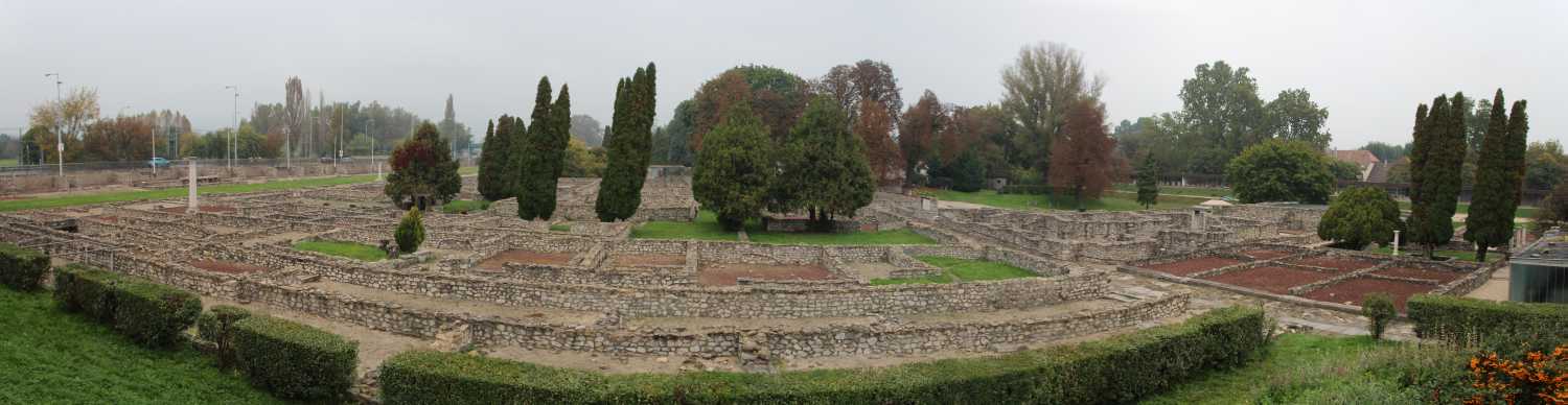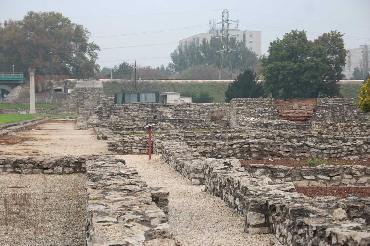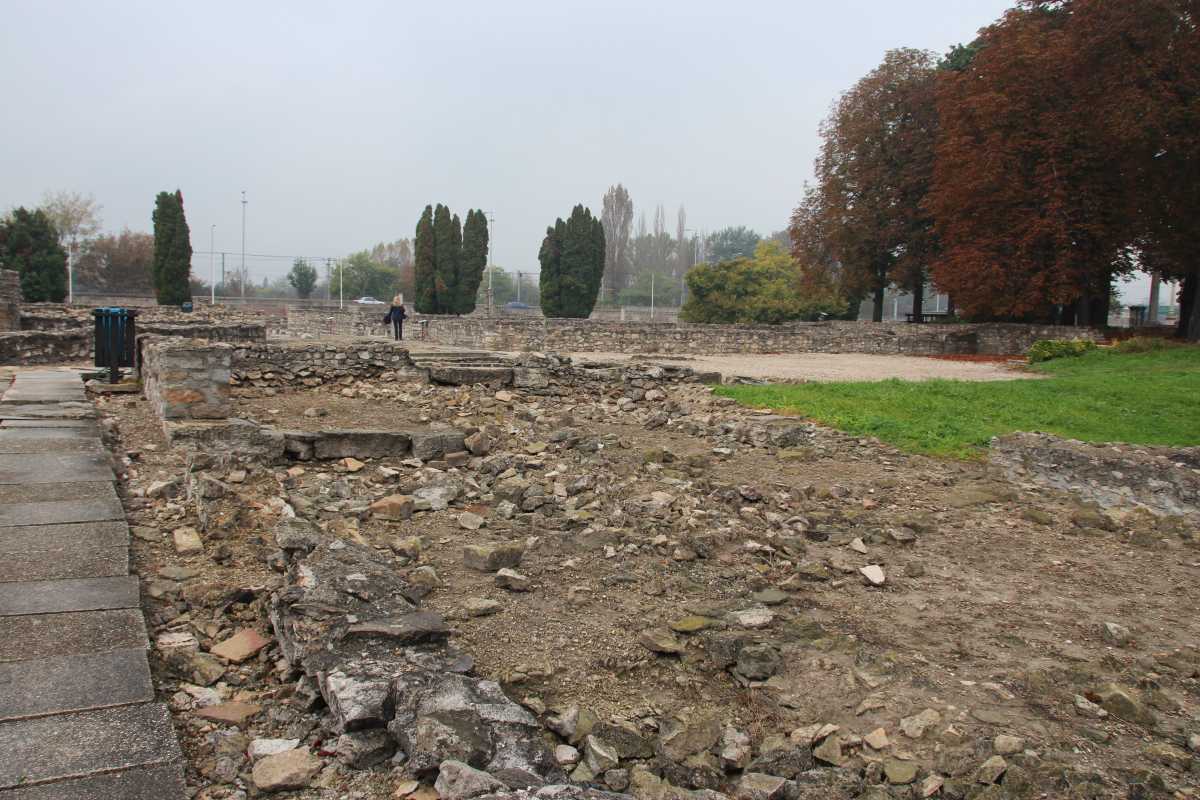 We beginnen de dag bij de Citadel op de 235 meter hoge Gellért heuvel, maar helaas miezert het en hangen er veel lage wolken en dus zien we Boedapest niet echt liggen. Ook het Liberty Statue alhier is vanwege de mist niet erg goed te zien. We besluiten hier later nog een keertje terug te komen en gaan naar de lokale Nagycsarnok markthallen. Mooie oude markthallen, met op de begane grond allerlei voedingswaren (voornamelijk worsten en vleeswaren) en op de eerste verdieping vele souvenirtjes, kitscherige spulletjes en Hongaarse jurkjes en kleedjes. Uiteraard hebben wij weer wat gekocht voor onze souvenir kast. We rijden noordelijker naar het Aquincum met de ruïnetuin. Een oude romeinse stad uit 89 en de voorloper van Boedapest. Volgens de reisgids van Fenna zou hier het oudste bronzen orgel van Europa te vinden zijn. We doen eerst het buitendeel en lopen een mooi rondje langs allerlei opgravingen en een badhuis met mozaïekjes. Ook zien we vele stenen tombes.