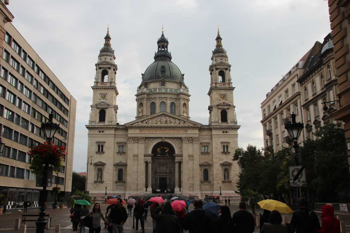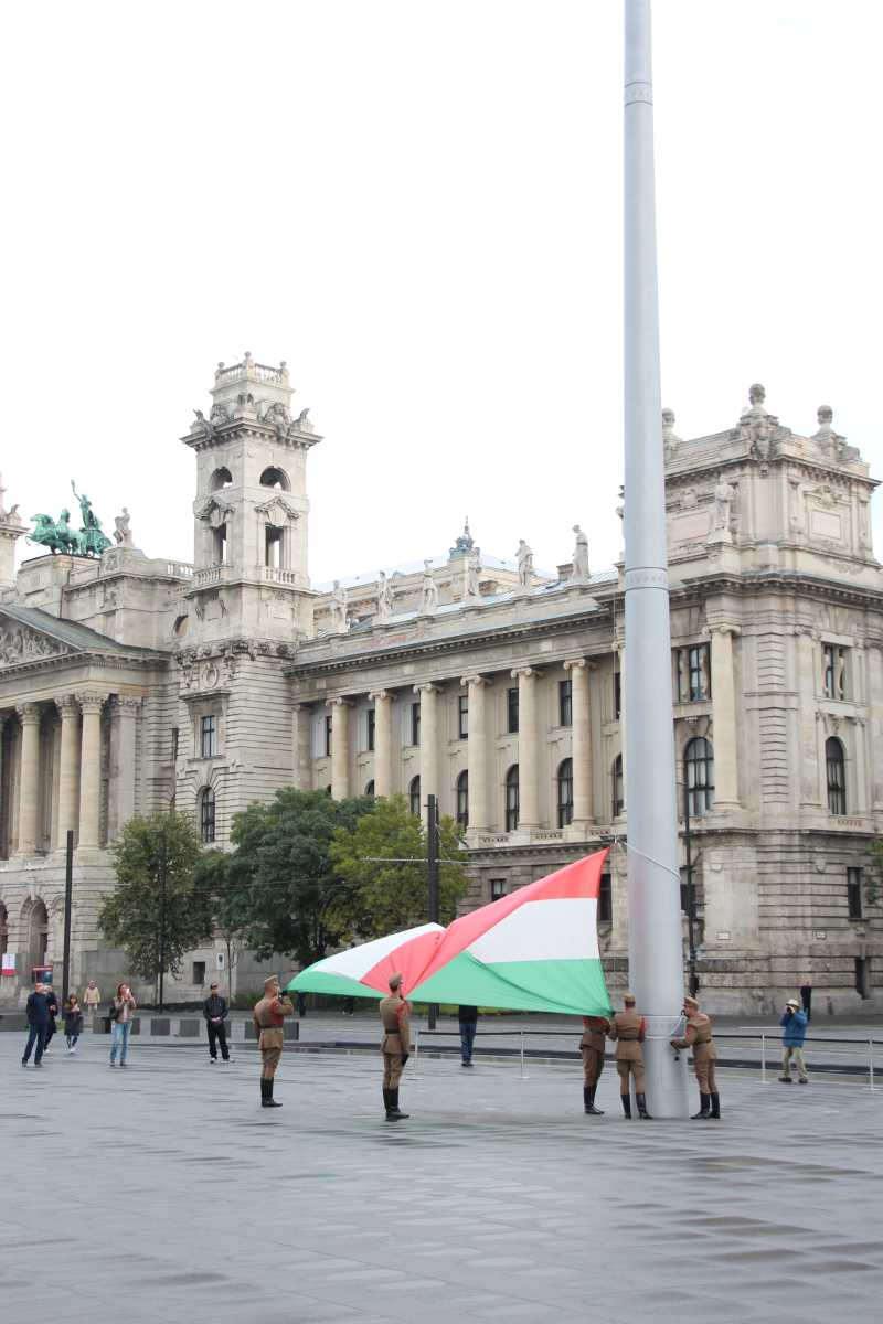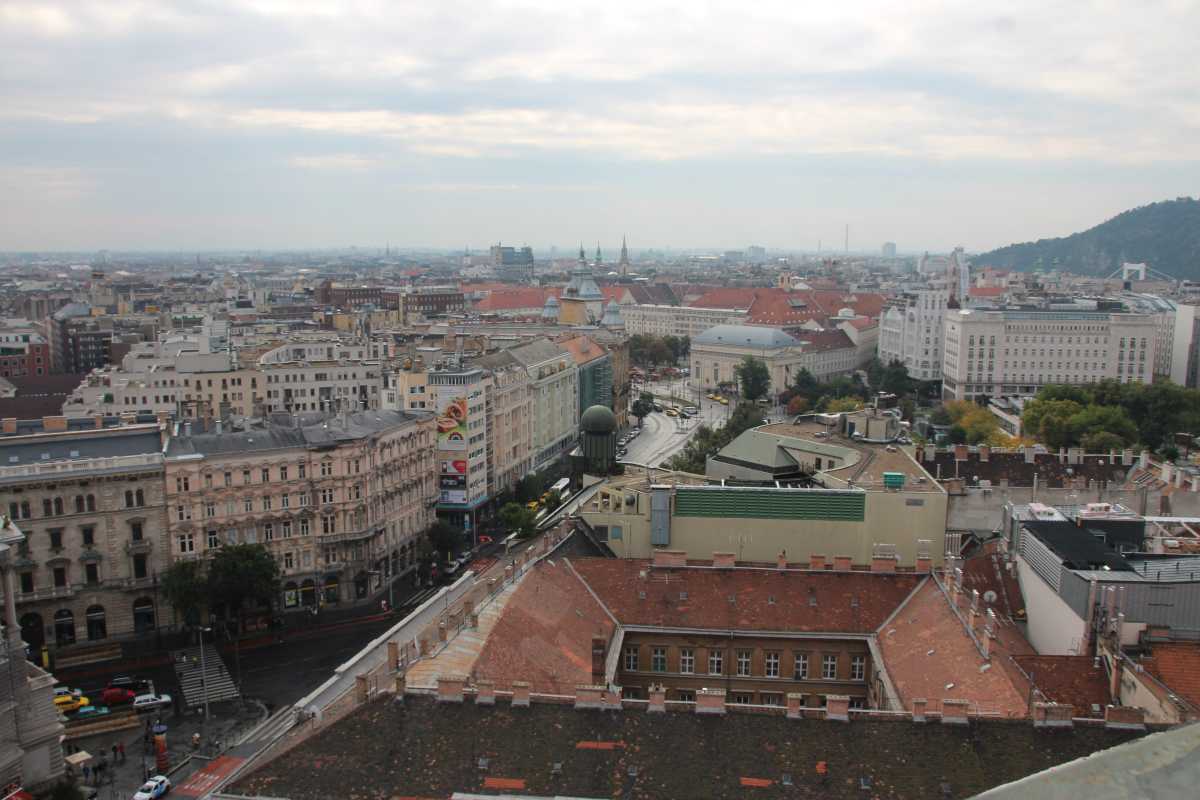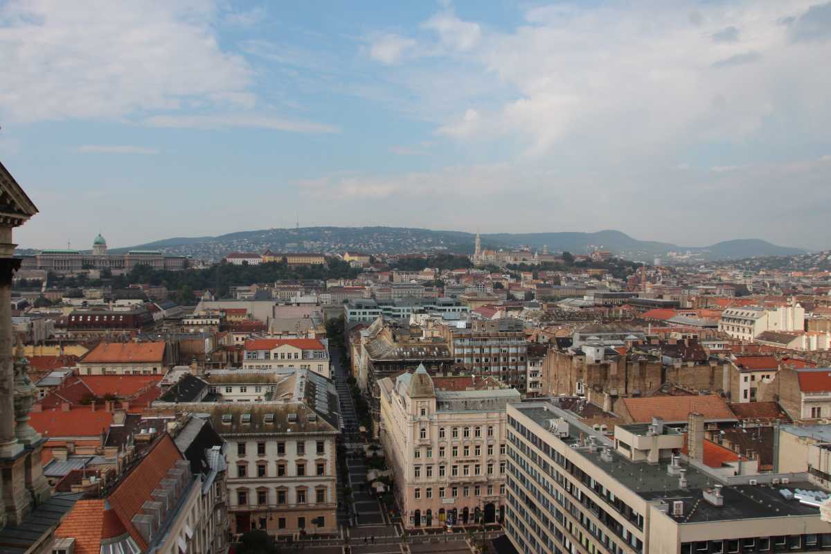 Na wederom uitgebreid te hebben ontbeten reden we weer naar het centrum. Vandaag hebben we de meeste zaken in Boedapest zelf bekeken. We parkeerden de auto op dezelfde plek als de dag ervoor, dit was in het centrum en we mochten er gratis staan. Van daaruit zijn we eerst een stukje de Danube kade afgelopen. Hier waren als kunstwerk 60 metalen schoenen te vinden, deze refereerden aan het feit dat in de oorlog schoenen zijn afgenomen van Joden welke werden gefusilleerd tijdens de pogroms die door de Pijlkruisers, een met nazi-Duitsland sympathiserende beweging, werden uitgevoerd. Een paar meter verder bereikten we het parlementsgebouw. Hier zijn we een stukje omheen gelopen waar aan de andere kant een groot plein ligt. Hier was net een ceremonie bezig waar een groepje soldaten de vlag richting de mast brachten en deze hier hoog hieven. Aan dit plein lag nog een ander mooi gebouw, het Etnografisch Museum. We zijn uiteindelijk binnendoor via straatjes richting de St. Stephan Basiliek gelopen. Hier konden we ditmaal wel in, enkel niet tot vooraan in de kerk, enkel het achterste stukje omdat er een mis bezig was. Vanuit de voorhal konden we (na betaling) met een lift naar boven om zodoende rond de koepel te kunnen lopen voor wederom een mooi uitzicht over Boedapest.