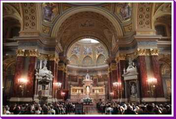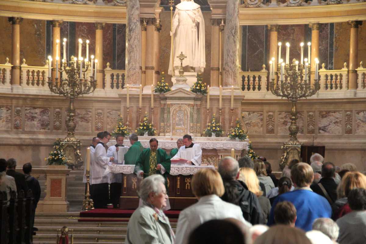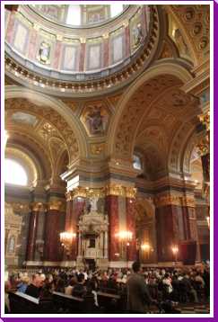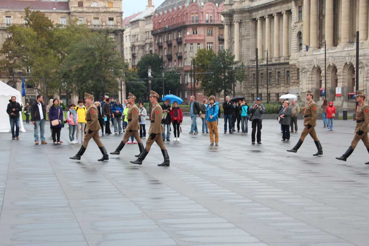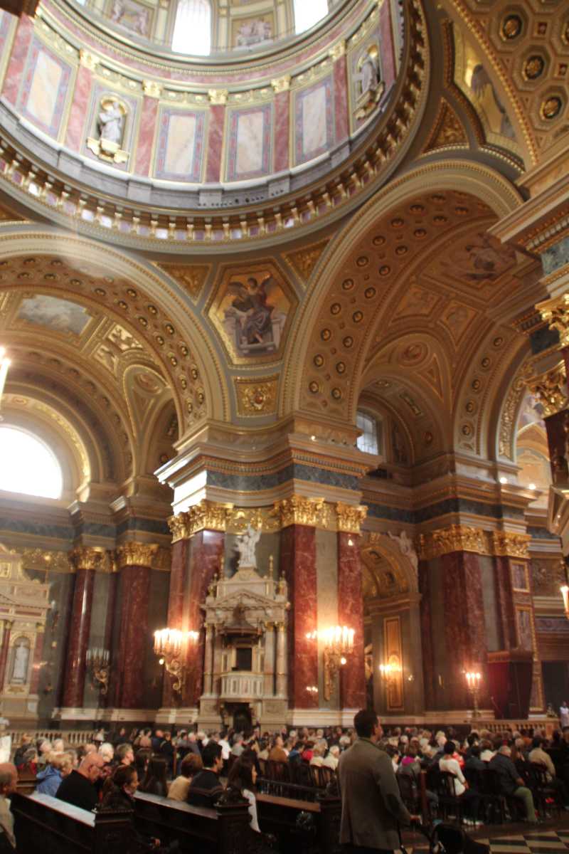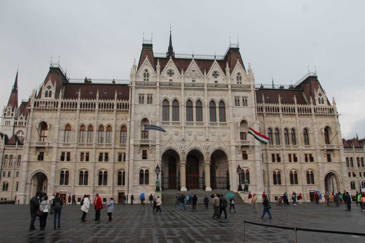 Na wederom uitgebreid te hebben ontbeten reden we weer naar het centrum. Vandaag hebben we de meeste zaken in Boedapest zelf bekeken. We parkeerden de auto op dezelfde plek als de dag ervoor, dit was in het centrum en we mochten er gratis staan. Van daaruit zijn we eerst een stukje de Danube kade afgelopen. Hier waren als kunstwerk 60 metalen schoenen te vinden, deze refereerden aan het feit dat in de oorlog schoenen zijn afgenomen van Joden welke werden gefusilleerd tijdens de pogroms die door de Pijlkruisers, een met nazi-Duitsland sympathiserende beweging, werden uitgevoerd. Een paar meter verder bereikten we het parlementsgebouw. Hier zijn we een stukje omheen gelopen waar aan de andere kant een groot plein ligt. Hier was net een ceremonie bezig waar een groepje soldaten de vlag richting de mast brachten en deze hier hoog hieven. Aan dit plein lag nog een ander mooi gebouw, het Etnografisch Museum. We zijn uiteindelijk binnendoor via straatjes richting de St. Stephan Basiliek gelopen. Hier konden we ditmaal wel in, enkel niet tot vooraan in de kerk, enkel het achterste stukje omdat er een mis bezig was. Vanuit de voorhal konden we (na betaling) met een lift naar boven om zodoende rond de koepel te kunnen lopen voor wederom een mooi uitzicht over Boedapest.