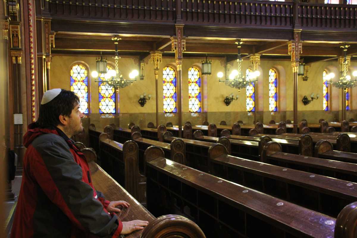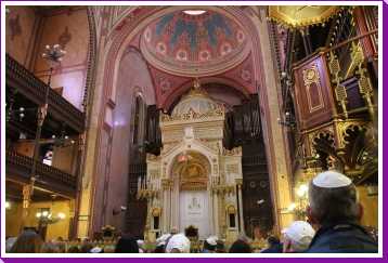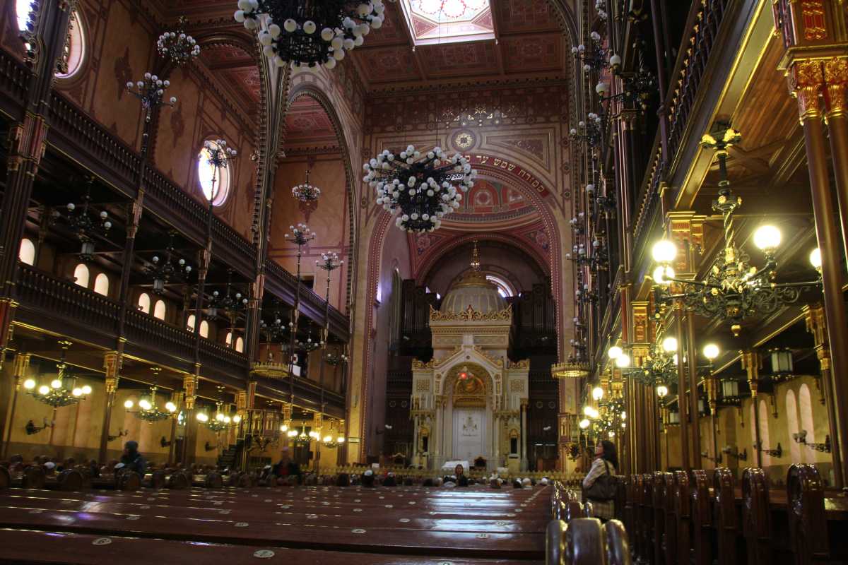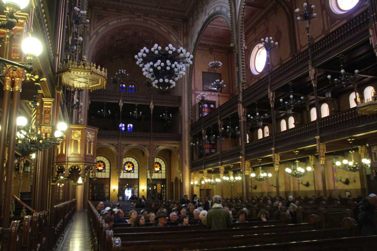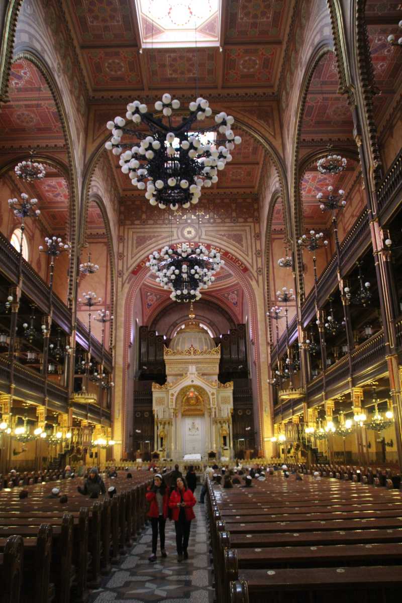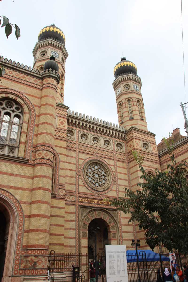 Eenmaal weer beneden was het tijd voor koffie bij de Starbucks naast de basiliek. We namen er ook nog een gebakje bij dat behoorlijk stevig bleek te vullen. Na deze versnapering liepen we naar de synagoge in Dohany Street, europa’s grootste synagoge en de 2e van de wereld. Hier bewezen de Joden maar weer eens handelslui te zijn, de toegang was bijna 10 euro per persoon wat veruit veel meer was dan elke andere bezienswaardigheid in en om Boedapest. Maar we moesten er natuurlijk toch even een kijkje nemen. Na een behoorlijk lange rij voor de kassa konden we eindelijk naar binnen. Het was inderdaad wel een mooie synagoge maar we hadden er meer bij voorgesteld. Van daaruit zijn we richting de Donau gelopen om daarlangs terug richting de auto te gaan.