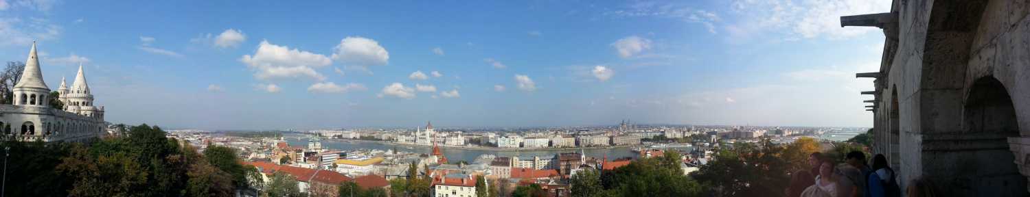Vervolgens zijn we naar de ‘Boeda’ kant gereden om hier eerst het vissersbastion te bezoeken met daar ook de Mathias kerk aan het Trinity plein. Het was vrij prijzig om de kerk ook binnen te gaan dus dat namen we voor lief. We kochten bij een zaakje nog wat broodjes om mee te nemen en aten die op in het zonnetje op een bankje vlakbij de auto. Na deze late lunch was het de bedoeling om door te rijden naar het Buda kasteel. Na een rit van een paar minuten zouden we daar zijn. Er bleek echter bij het aangegeven punt geen parkeerplek, en toen we de eenrichtingsstraat omhoog volgden kwamen we weer op exact hetzelfde punt uit als waar we net hadden gestaan. Emiel dacht echter van niet en zei dat alles op elkaar leek. Dus de auto toch maar geparkeerd en Emiel liep naar boven. Daar bleek al snel dat het toch echt hetzelfde punt was en dat we dus te ver waren doorgereden. Dus snel weer de auto in en een stukje terug. Na enige tijd wachten op een plekje en nog een ronde over de rechter helft van deze berg vonden we dan uiteindelijk een plekje. Van hieruit was het nog wel een aardig klimmetje naar boven maar we bereikten uiteindelijk wel het Buda kasteel. Boven maakten we weer verschillende foto’s rondom het kasteel.