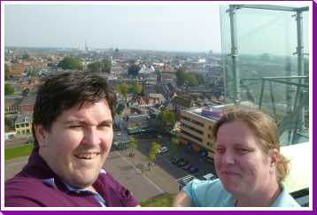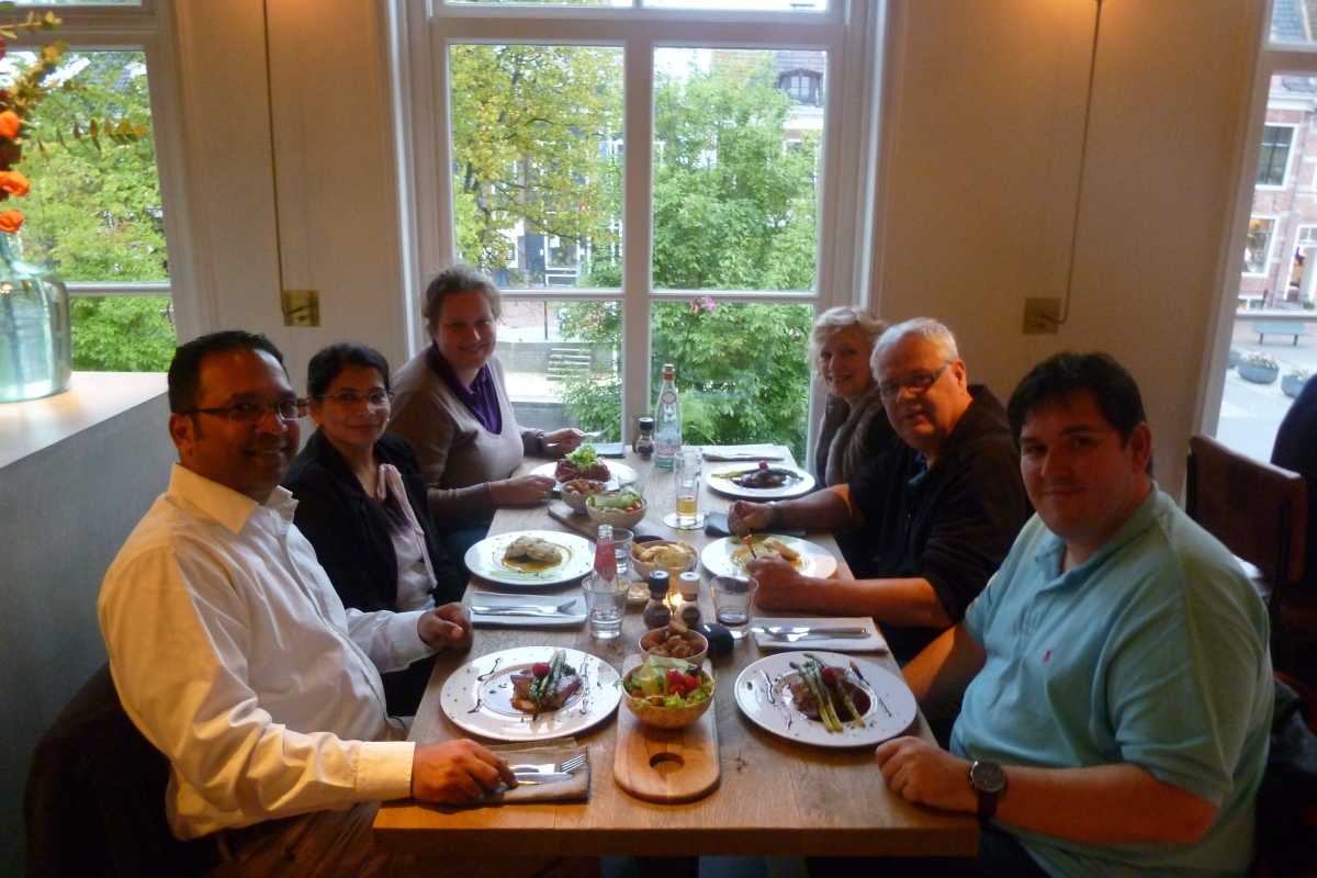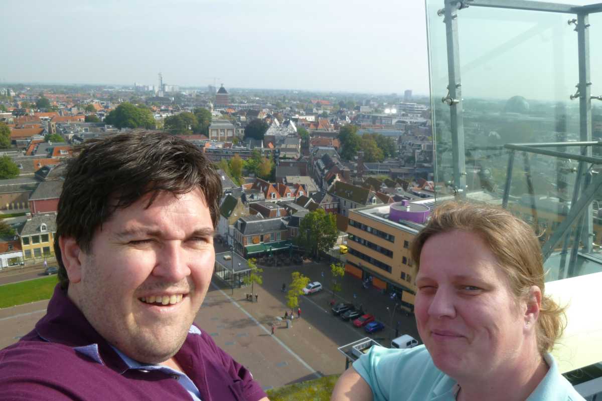 Zondags hebben we eerst uitgeslapen om om 09.45 te gaan ontbijten. Daarna hebben we uitgecheckt en zijn we naar Leeuwarden gereden. Hier was er een jaarmarkt. Na enige rondjes door het centrum maar weer op een terrasje neergeploft voor opnieuw een drankje. Toen we terug naar de auto liepen kwamen we langs de Oldehove, een toren in Leeuwarden die aardig scheef staat. Deze bleek geopend voor beklimming. Dus Oemesh, Erik & Jantine naar boven voor het uitzicht. Omhoog lopen langs een wenteltrap die flink scheef staat geeft een wat dronken gevoel, maar eenmaal boven was het uitzicht wel mooi. Eenmaal weer met beide voeten op de bodem weer de auto in en via de afsluitdijk naar Den Oever gereden. Op de afsluitdijk zijn we nog even gestopt bij het monument van ingenieur Lely die met het plan voor afsluiting van de Zuiderzee kwam. Na de aanleg van de afsluitdijk werd de Zuiderzee dus het IJsselmeer. Lucas wist in Den Oever wel een leuk plekje om te lunchen bij de haven. We hebben nog even een lekker visschotel op bij De Basalt, enkel Jantine en Erica zaten aan de kip-saté. Na de lunch hebben we het weekend afgesloten en gingen we weer onze eigen weg om aan het einde van de middag weer thuis te arriveren.