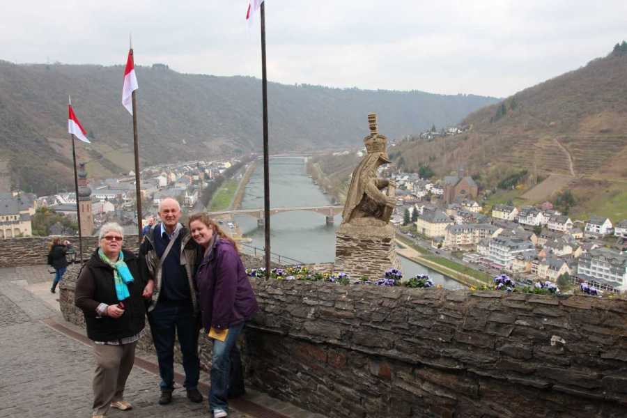 De dag erop zijn we richting Cochem gereden. Hier heeft Erik eerst even gekeken bij het pension waar hij vroeger wel vaker verbleef tijdens vakanties. Onderweg kwamen we al langs de kabelbaan maar die was nog gesloten. Vervolgens hebben we de Burcht bezocht. Hier konden we een rondleiding doen. We kregen een privé rondleiding en de dame die ons begeleidde had een cursus Nederlands gedaan en was goed te volgen in het Nederlands. Als laatste bezochten we ook nog de historische mostertmolen. Hier werd Jantine wel een keer of 4 op de vingers getikt omdat ze bij het proeven steeds weer neigde hetzelfde lepeltje te gebruiken en dat is funest voor de mosterd gezien de bacteriën. Bij de 4de keer viel die man best wel uit naar haar, dus uiteindelijk verlieten we na de uitleg de mosterdmolen. We zijn vervolgens naar het huisje van Landal in Kröv gereden op park Mont Royal. Onderweg deden we in Wittlich eerst nog wat boodschappen zodat we die avond even in het huisje wat konden eten.