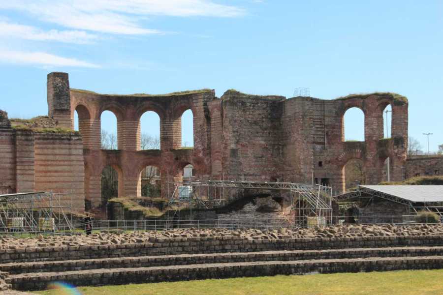 Donderdag was Erik jarig. We zijn die dag naar Trier gereden, wel via de snelweg. In Trier maakten we al lopende een rondje door de stad. We bezochten het Karl Marx huis, de Porta Nigra (romeinse poort), de St. Peters Dom, de basiliek van Constatin, de Liebfrauenkirche, de Kaiserthermen en het Amphitheater. Daarmee was de dag alweer voorbij en zijn we terug naar Kröv gereden. In Bernkastel hebben we nog even gebak gehaald voor 's-avonds bij de koffie voor Erik zijn verjaardag en we hebben daar aan het water gegeten. Het eten hier was zout, zout en nog eens zout. Maar we hebben het overleefd.