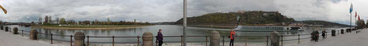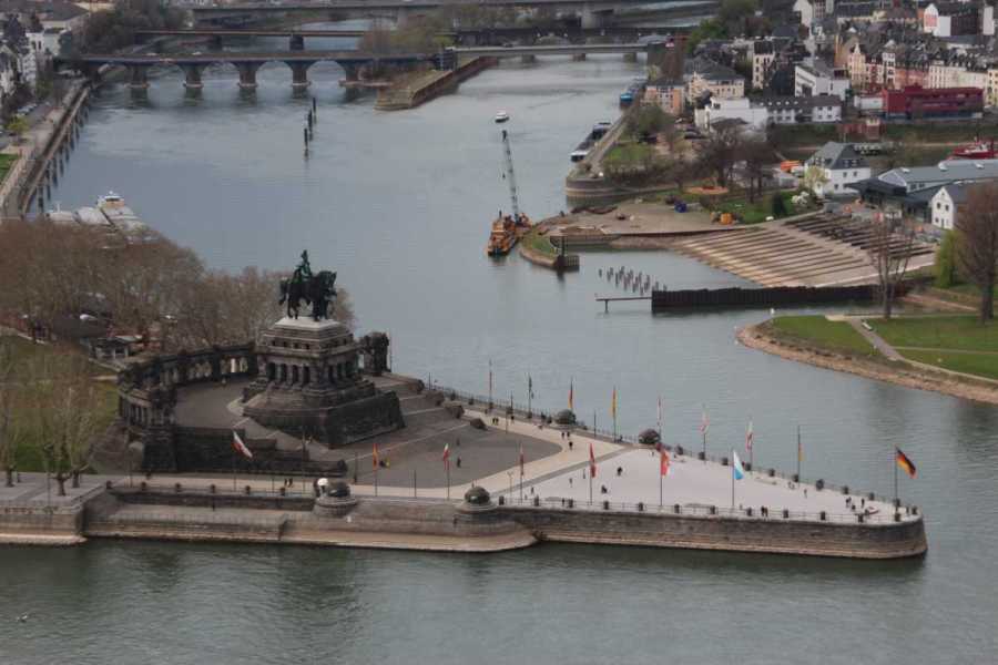 Op zaterdag was Jantine haar moeder niet helemaal lekker en dus zijn enkel Erik en Jantine naar Koblenz gereden. Hier bezochten we het Deutches Eck waar de Rijn en de Moezel samen komen. Daar staat ook een groot monument van keizer Wilhelm I. Daarna hebben we de kabelbaan genomen naar vesting Ehrenbreitstein. Daar hebben we vervolgens een groot deel van de vesting doorgelopen die als museum was ingericht. Eenmaal weer met de kabelbaan naar beneden liepen we nog even door de tuin van het Kurfürstliches Schloss om vervolgens in het centrum nog op de kruising Altengraben/Am Plan en Markt/Löhrstraße nog even te kijken naar de erkers van barokke hoekhuizen alhier, de zogenaamde Vier Türme. Daarna reden we net buiten Koblenz nog even langs Schloss Stolzenfels. Omdat we nog tijd hadden hebben we vervolgens nog even geshopt voor schoenen en nog even boodschappen gedaan bij de Real. Daarna zijn we weer richting park gereden waar we de ouders van Jantine weer ophaalden om alsnog weer wat te gaan eten beneden in het centrum.