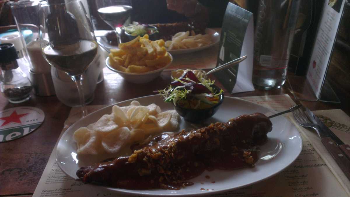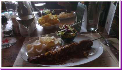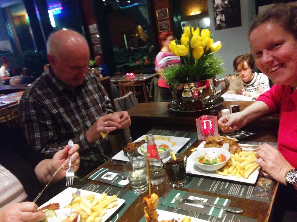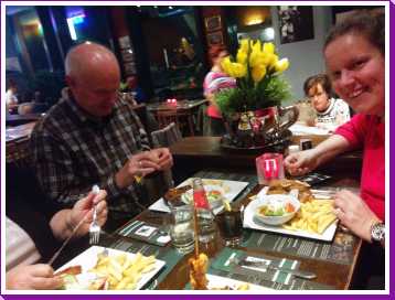 Eenmaal weer terug bij het hotel was het weer tijd voor een drankje en dus gingen we naar binnen bij Eric's café dat er links naast ligt. Hier hebben we maar even geïnformeerd naar leuke restaurantjes. Zodoende kwamen we voor het diner terecht in stadscafé Artisante. Hier hebben we lekker gegeten. Vervolgens zijn we weer naar het hotel gelopen en hebben we beneden in de bar nog een laatste drankje genomen. Kortom, deze dag liepen we van eten naar drinken naar eten naar drinken, enz. enz.