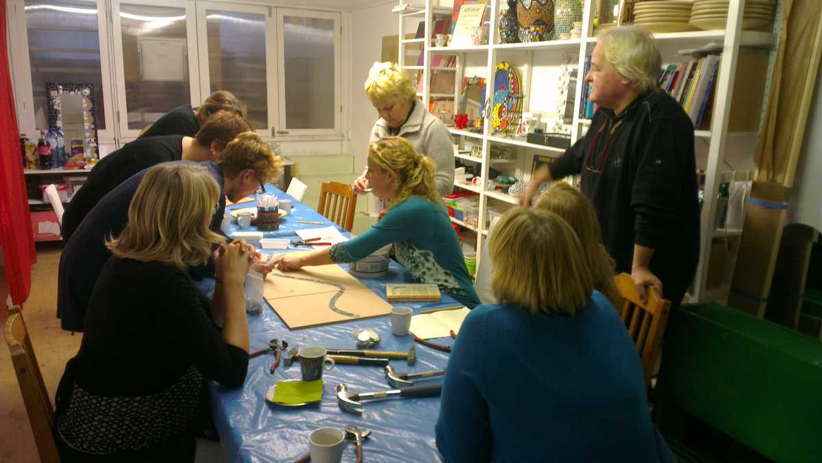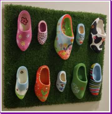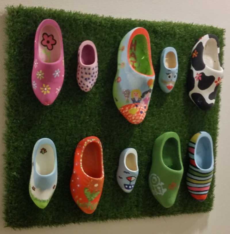 14 december: De klompjes zijn opgehangen op een 'grasveldje' en hangen nu in de praktijk.....