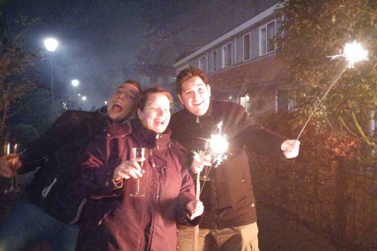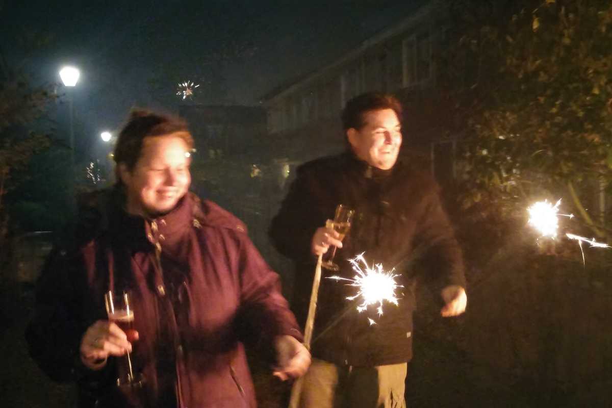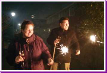 31 december: Traditiegetrouw hebben we ook dit jaar weer oud- en nieuw gevierd bij Marc & Henriëtte in Den Haag. We hebben samen met hun en Marc's zus Judith en Marc's vriend Edwin gezellig zitten babbelen en naar TV zitten kijken. Na middernacht hebben we in de vuurkorf wat CD rekken en een complete luidspreker staan te verbranden. Bij buren een paar deuren verderop ging aardig wat vuurwerk de lucht in, één van de bezoekers aldaar bleef langs ons op en neer naar de auto lopen voor meer vuurwerk en liet de lege dozen steeds bij ons achter voor de vuurkorf. Edwin is wat dat betreft een ware pyromaan en bleef het vuurtje flink opstoken. Ook dit jaar zijn we uiteindelijk maar weer blijven slapen.