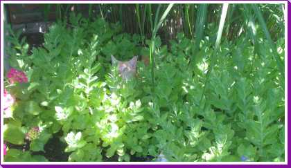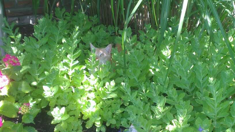 Daarna zijn we lekker ff in de tuin gaan zitten zodat ook de katten buiten konden. Gizmo dacht zich goed te hebben verstopt maar dat viel wel mee.....